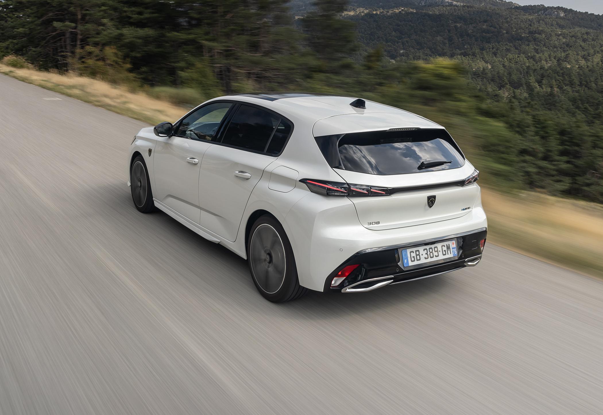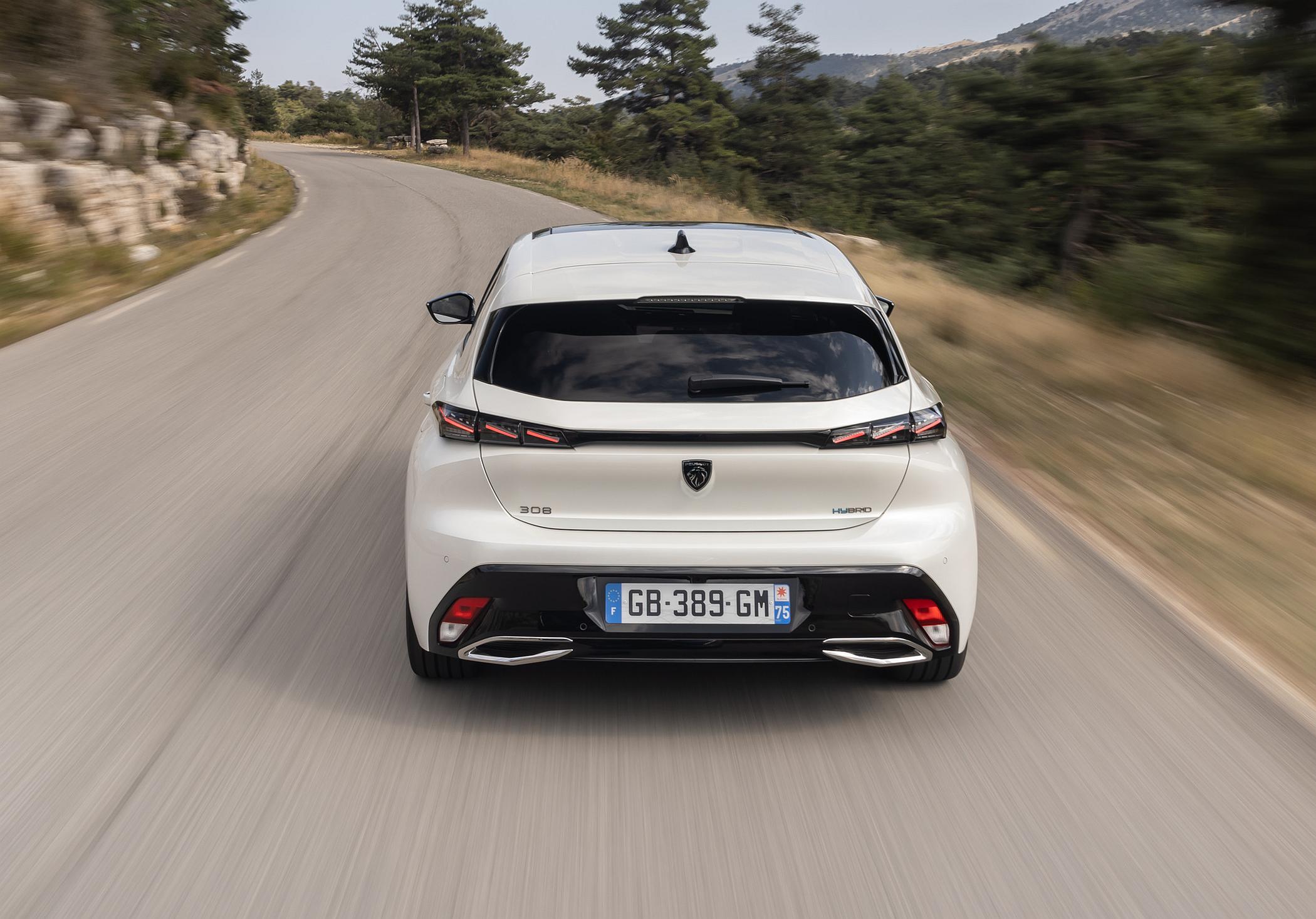 O comportamento surpreende pela positiva, pois apesar de muito confortável, o 308 é seguríssimo em curva, correspondendo com precisão ao volante, sendo por isso uma opção a considerar para quem não só procura conforto para a família, mas também satisfação nas viagens do dia-a-dia. O aumento do peso pelo módulo híbrido é pouco relevante, parecendo até ajudar na distribuição de peso pelo chassis quando em condução mais dinâmica, mas em nada afeta o conforto, que é bastante elevado, não obstante as jantes de 18 polegadas da unidade testada em configuração GT Pack.