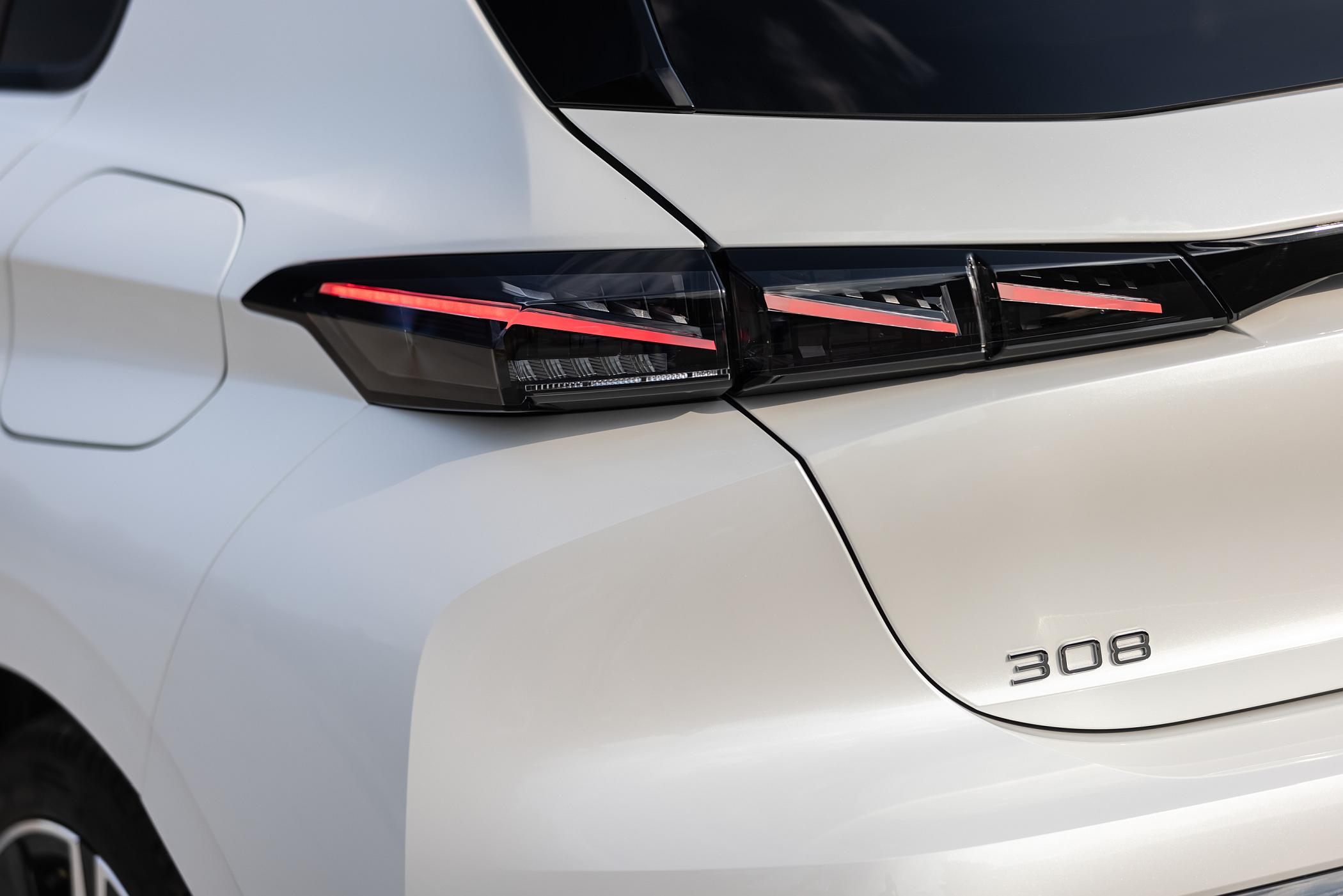 O perfil é o que menos surpreende, estando alinhado com o desenho do anterior 308, mesmo que a secção inferior, mais esculpida, seja digna de destaque. É na traseira que estão os outros pontos de destaque, sobretudo na linha horizontal dos farolins, com tecnologia LED, e no para-choques desportivo em preto para maior distinção e contraste. Talvez se escusasse a utilização de logótipos do leão nas laterais, junto às cavas das rodas, como que a lembrar uma certa marca italiana… Com exceção disso, um exemplo brilhante de um desenho bem conseguido.