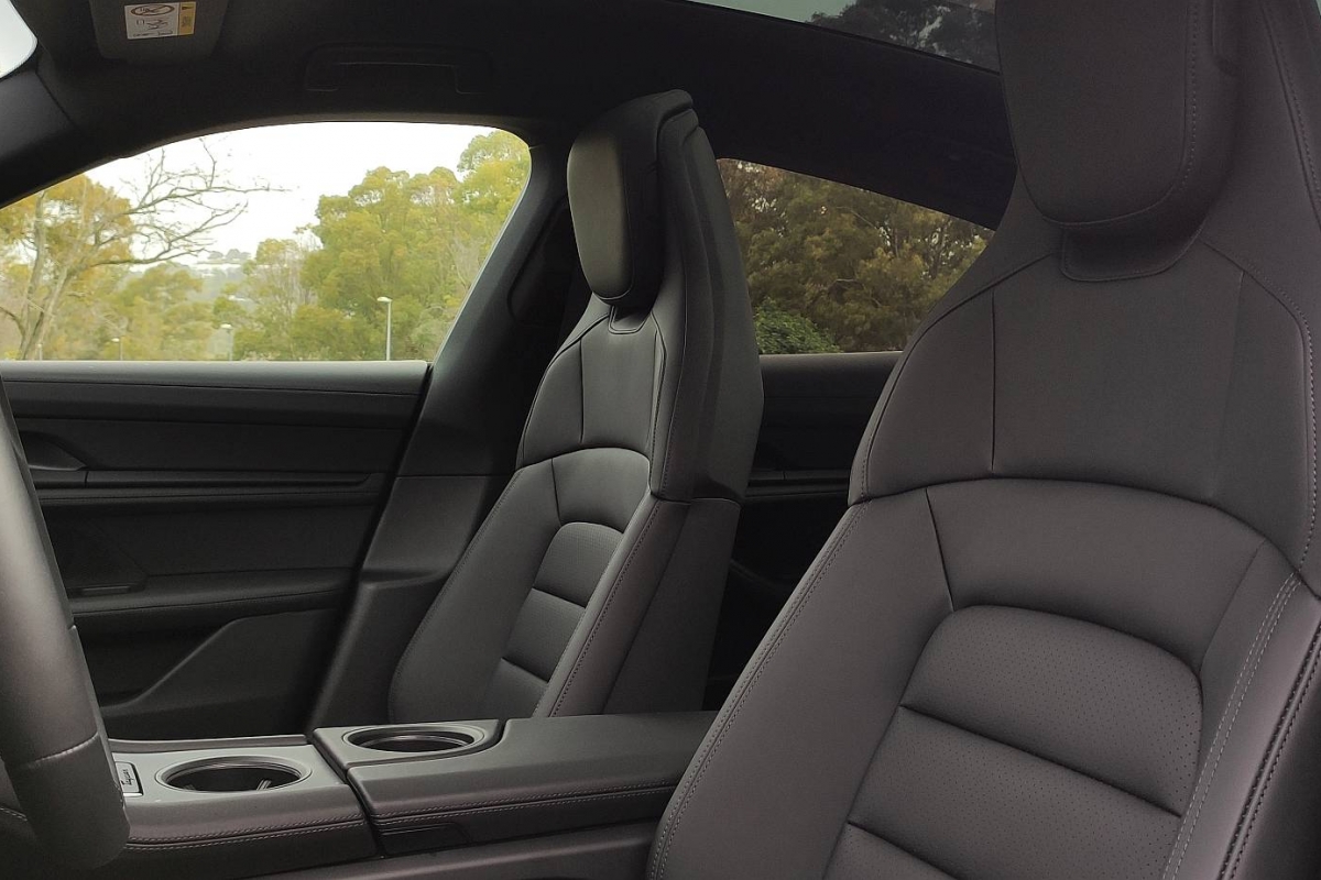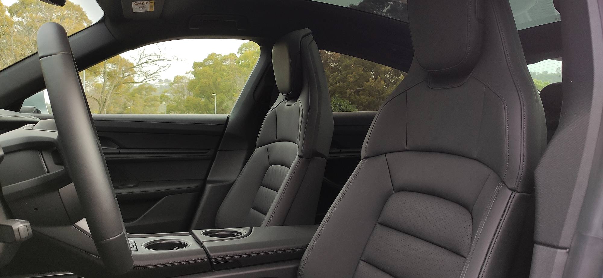 Nota, ainda, para as grandes dimensões deste modelo, com quase cinco metros de comprimento (4963 mm) e quase dois metros de largura (1966 mm), o que além de reforçar a visão robusta, também permite ter um habitáculo desafogado, mesmo que não tenha uma habitabilidade excecional. Com efeito, não há grandes apertos no Taycan, mas a altura nos lugares traseiros não é fantástica e o lugar central (opcional) serve apenas como solução de recurso. Seja como for, viaja-se bem no Taycan e apenas se for muito alto terá razões de queixa atrás.