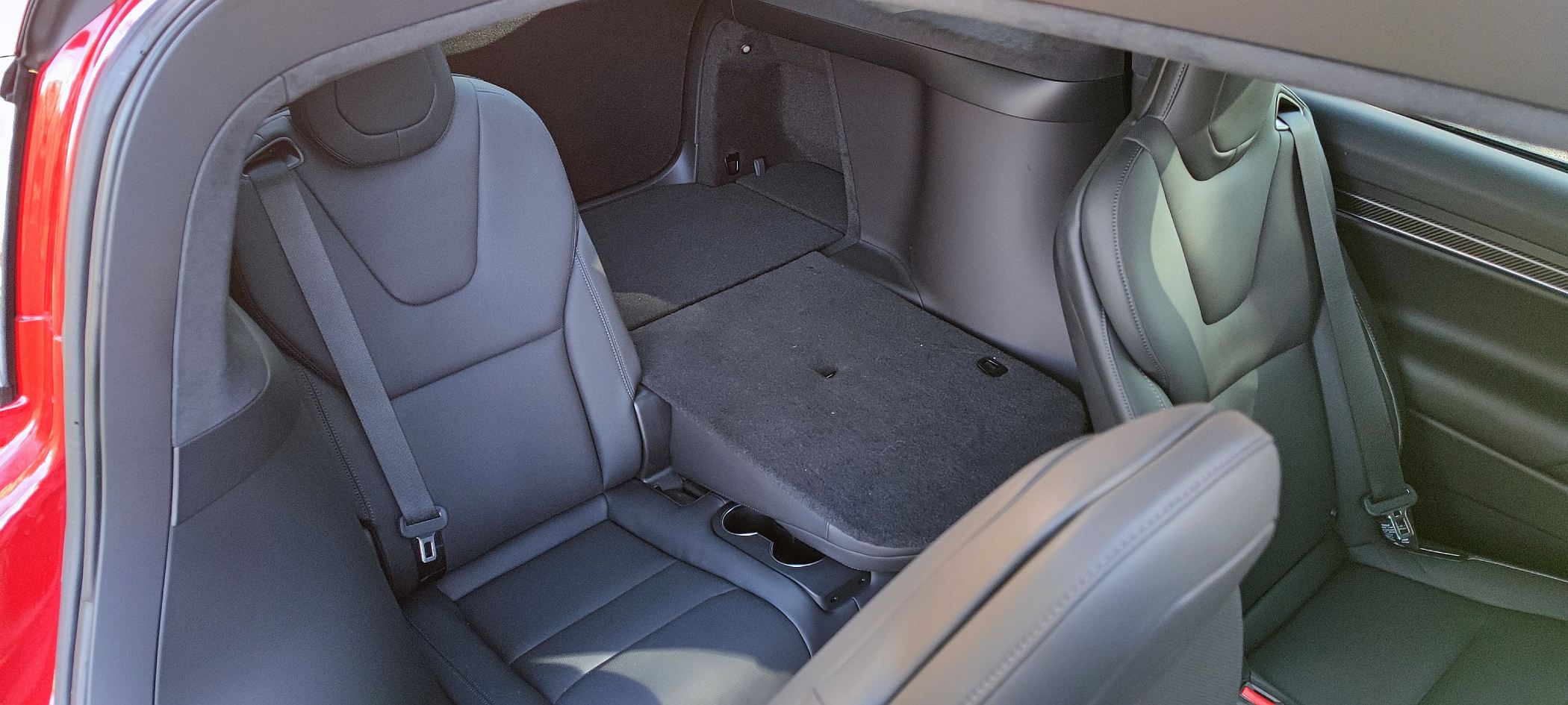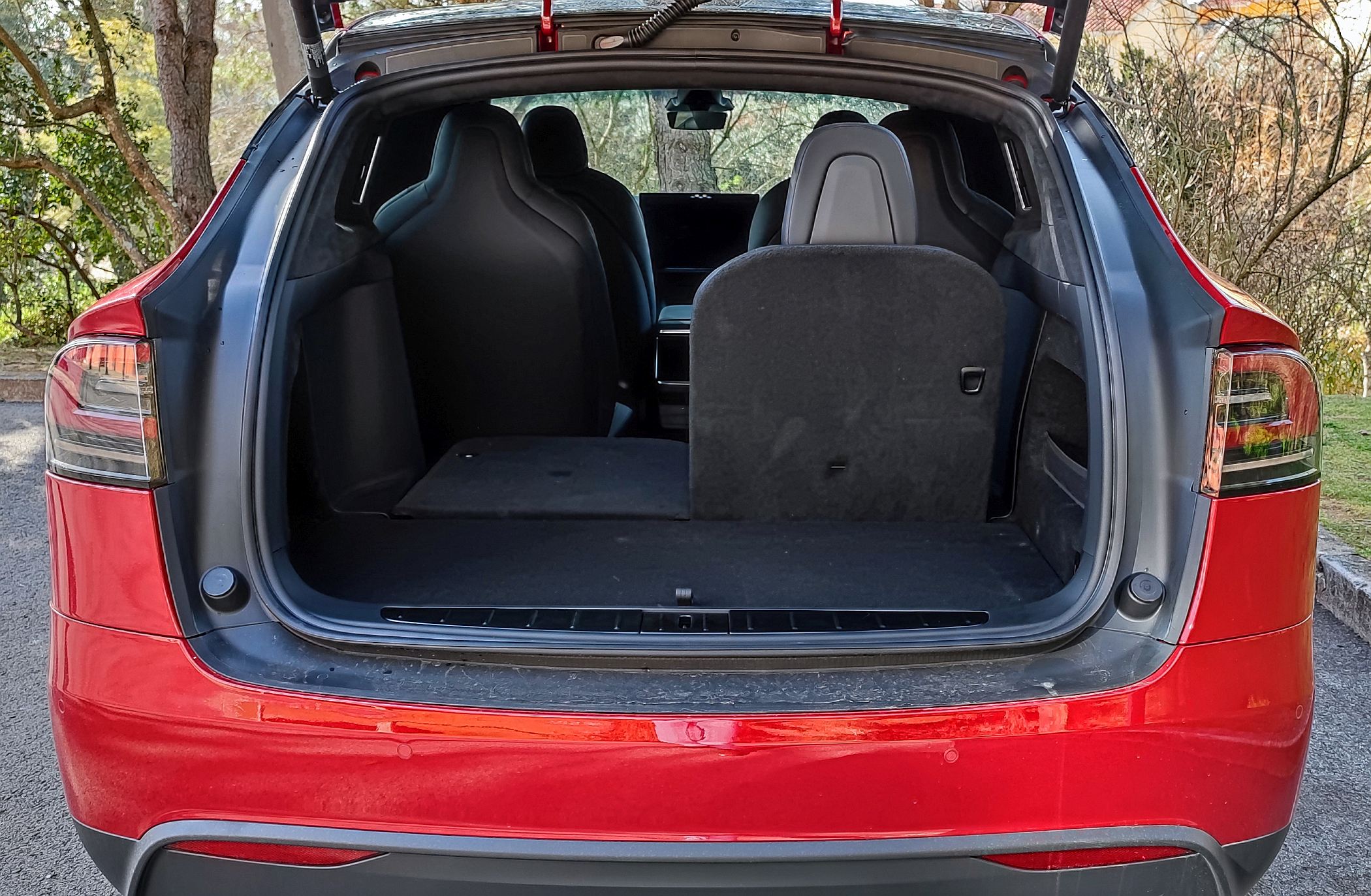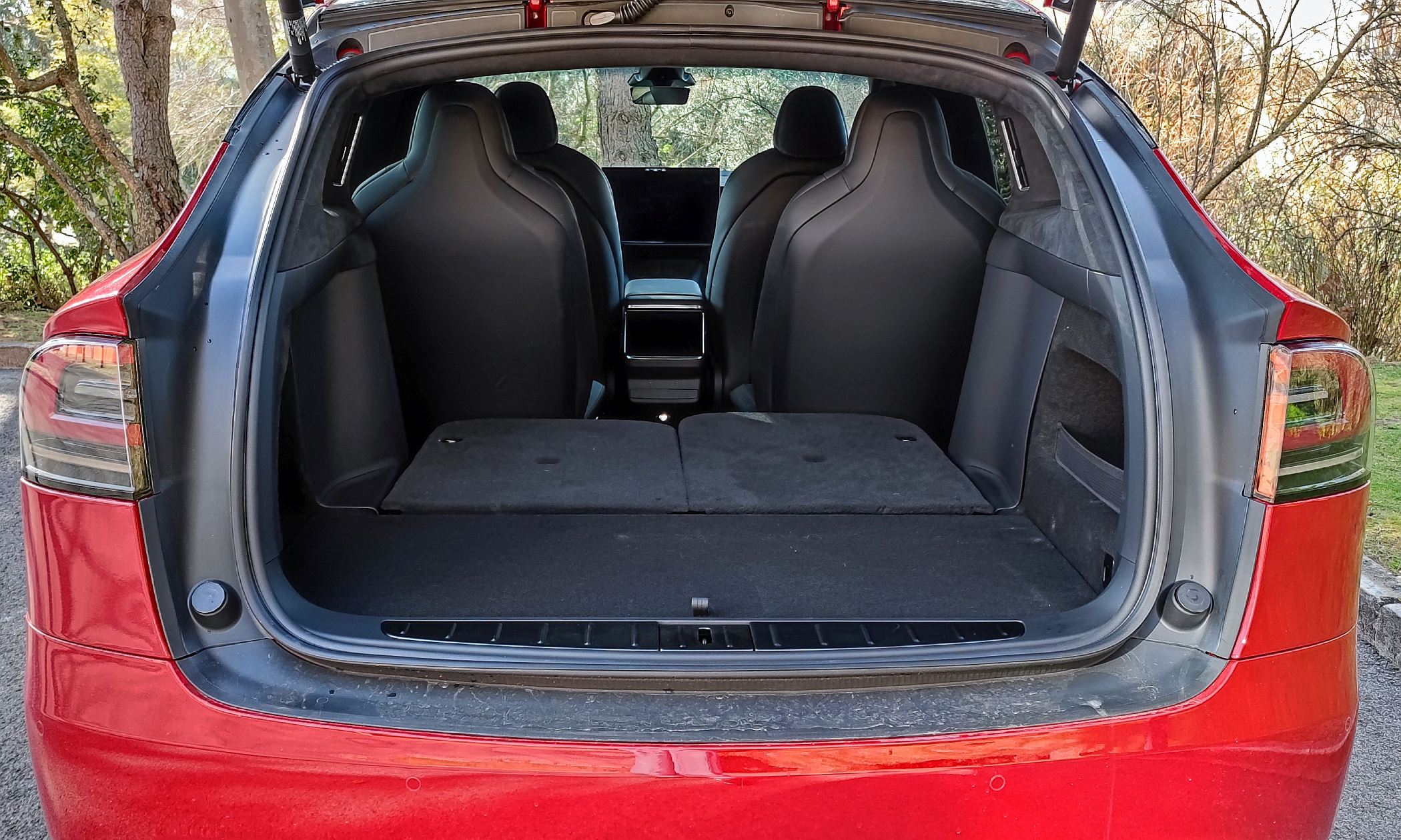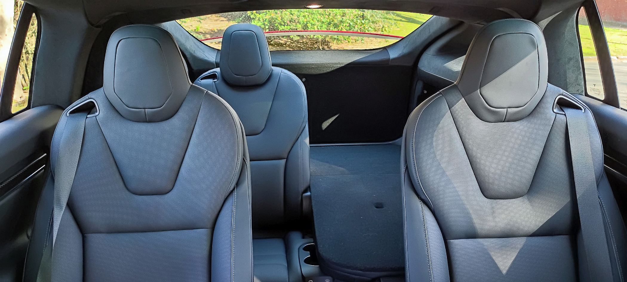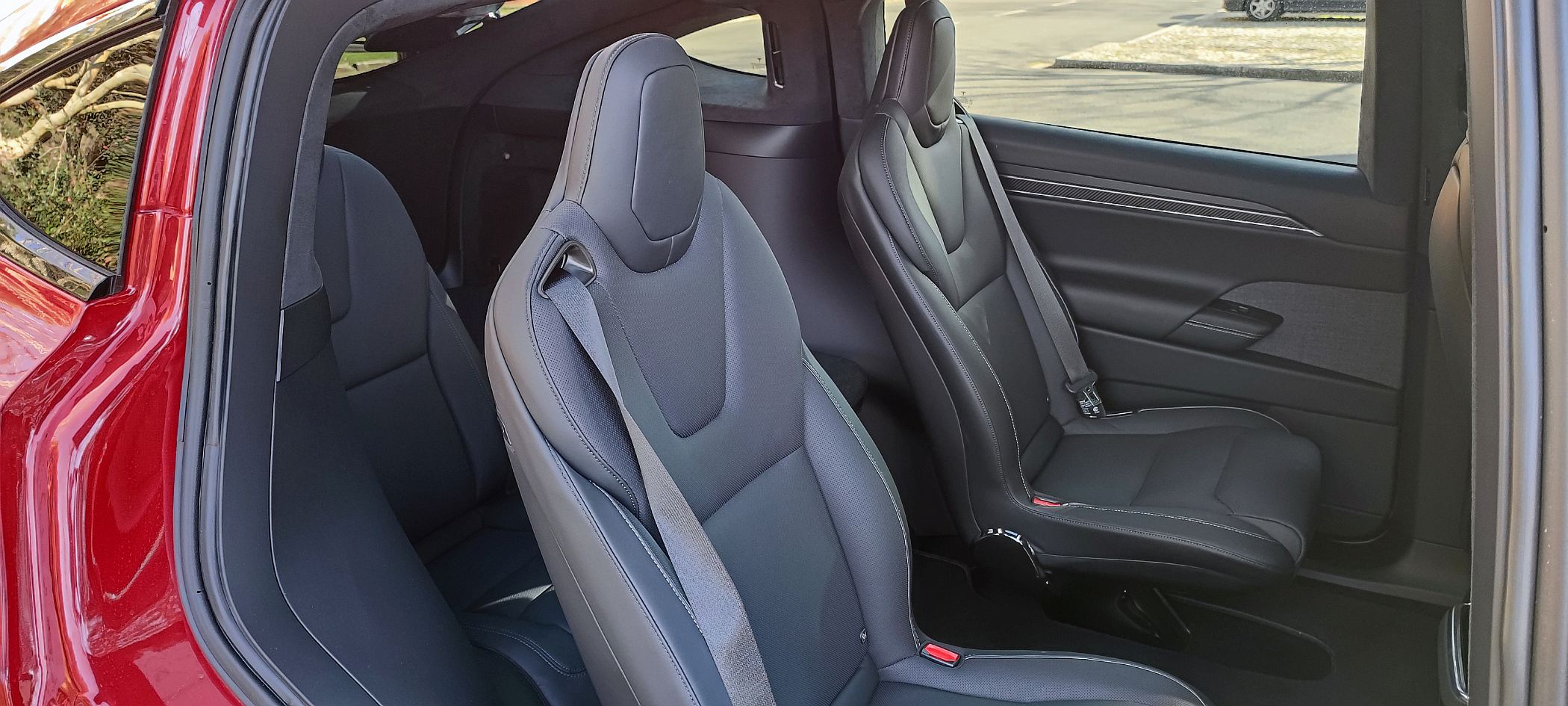 O Model X Plaid ensaiado tem a configuração de seis lugares (2+2+2), com os da segunda fila a terem ajuste elétrico, enquanto os da terceira fila podem ser rebatidos para se obter um piso plano na bagageira. Uma solução que resulta bastante funcional, até porque o espaço na terceira fila é relativamente útil até para adultos, tanto no espaço para as pernas, como em altura, já que o formato da carroçaria favorece a habitabilidade (bem como os 2965 mm de distância entre eixos).