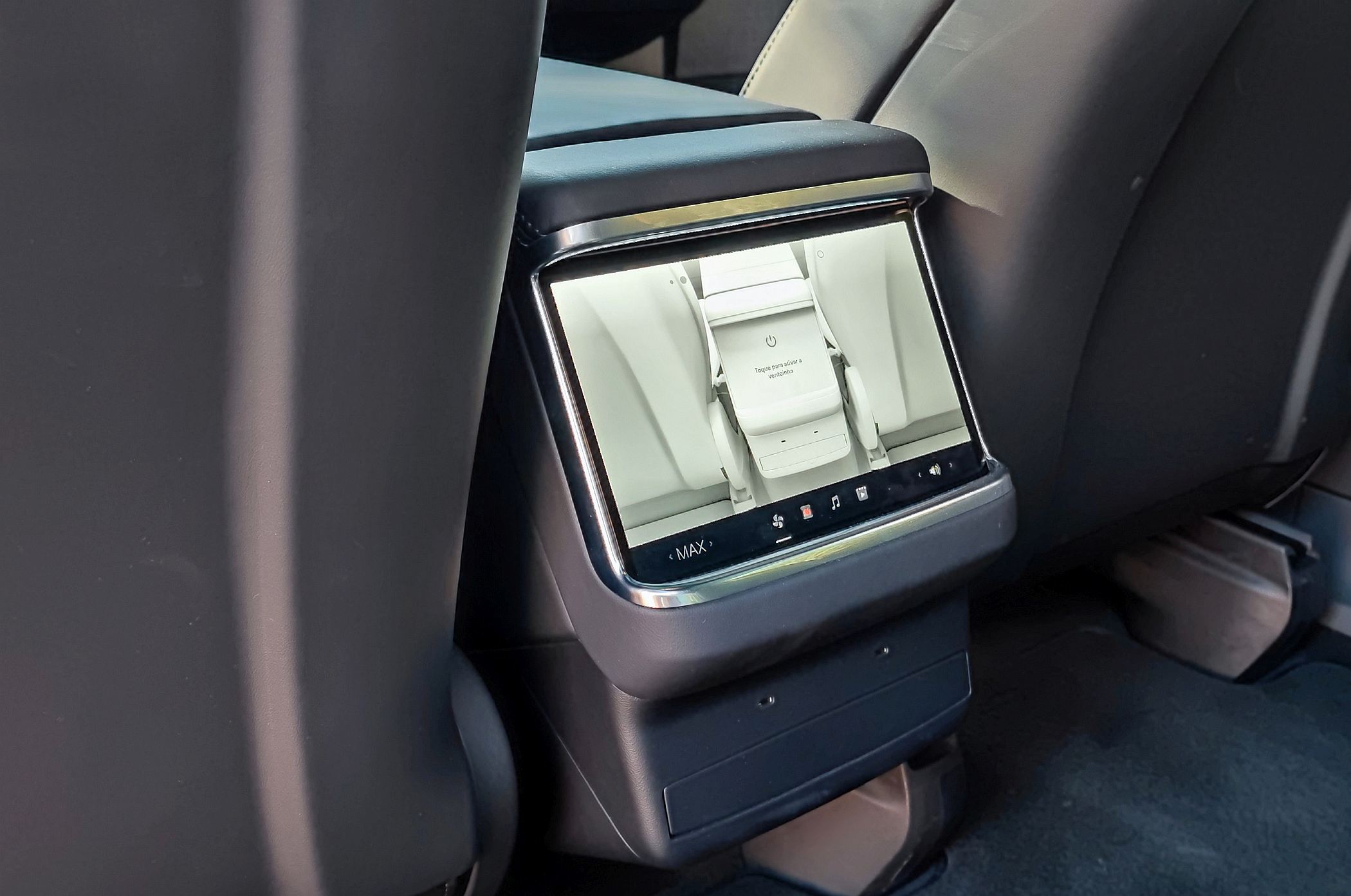 Os ocupantes da segunda fila também têm acesso a um ecrã tátil de 9.4″ para uma série de funcionalidades, como o controlo da climatização ou de pontos multimédia. De resto, no habitáculo, com bancos revestidos a pele preta, destaque ainda para o grande tejadilho panorâmico. Valorize-se ainda a insonorização muito bem conseguida do habitáculo e o sistema de áudio com 22 altifalantes e 960 watts de potência.