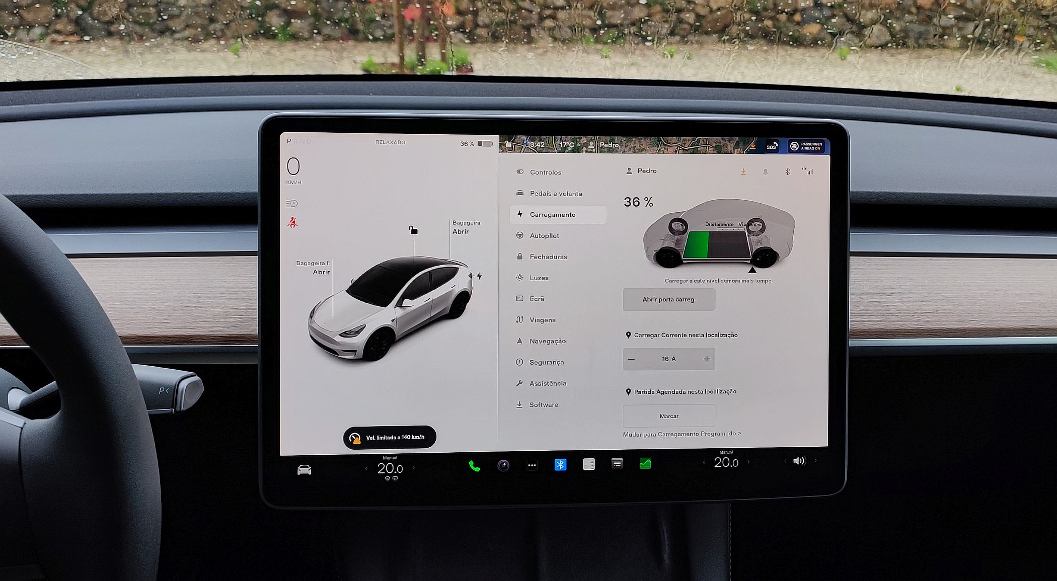 Um dos aspetos em que a Tesla tem vindo a ganhar pontos é com a tecnologia, em todas as suas facetas. A bordo, o já referido ecrã de 15 polegadas tira partido de uma ótima visualização e interação, dispondo de aplicações integradas, como são os casos de Spotify ou Tidal, aplicações de música que permitem tirar o melhor partido do sistema som Premium com 14 altifalantes, subwoofer e dois amplificadores.