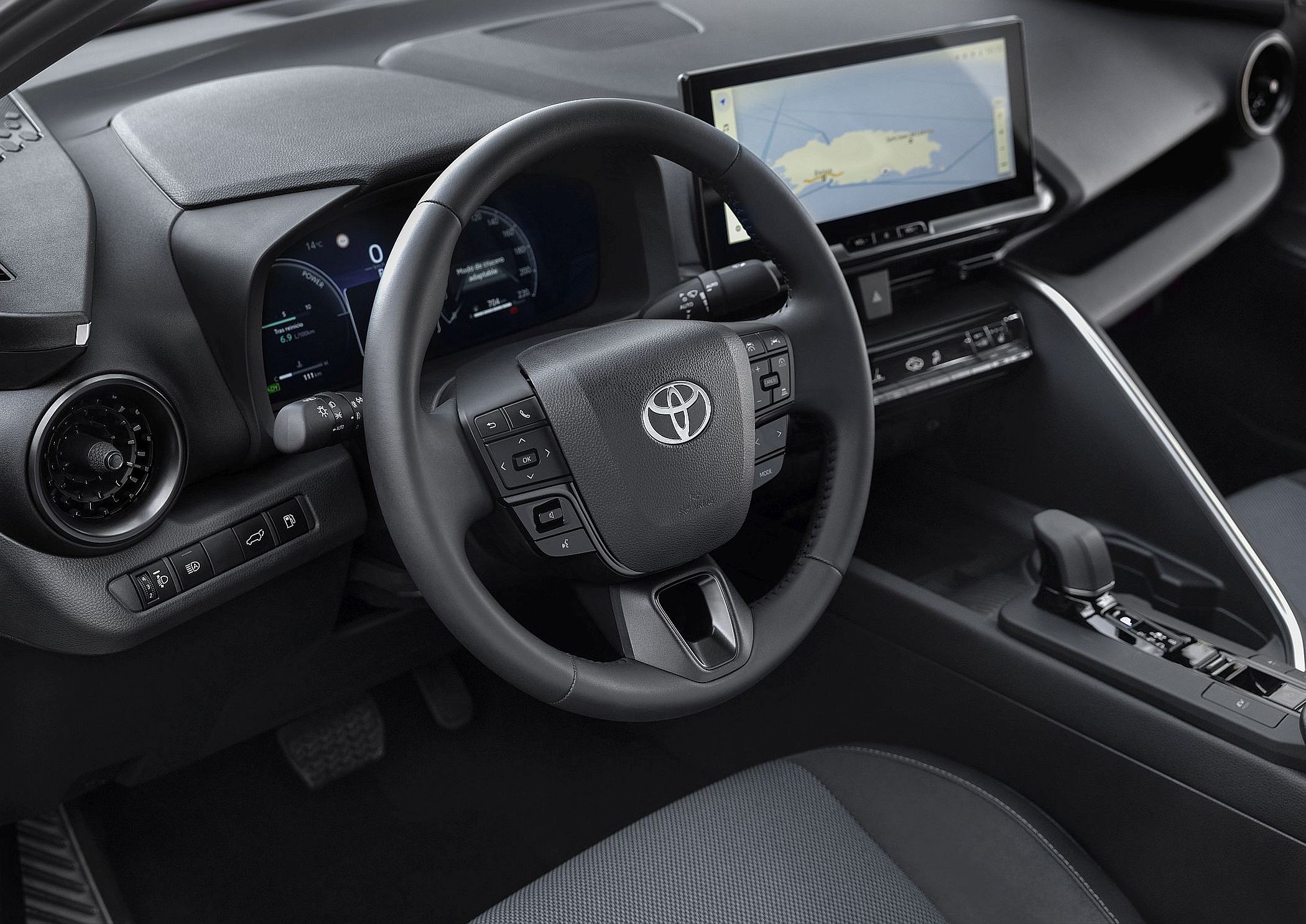Na vertente tecnológica, o C-HR está equipado com sistema Toyota Smart Connect, com ecrã de 12.3” e navegação, além dos já corriqueiros emparelhamentos com os sistemas Android Auto e Apple CarPlay (este sem fios). O sistema de navegação integrado fornece informações sobre a autonomia elétrica e locais de carregamento nas suas imediações na função POI (Pontos de Interesse), embora o grafismo não seja genial.