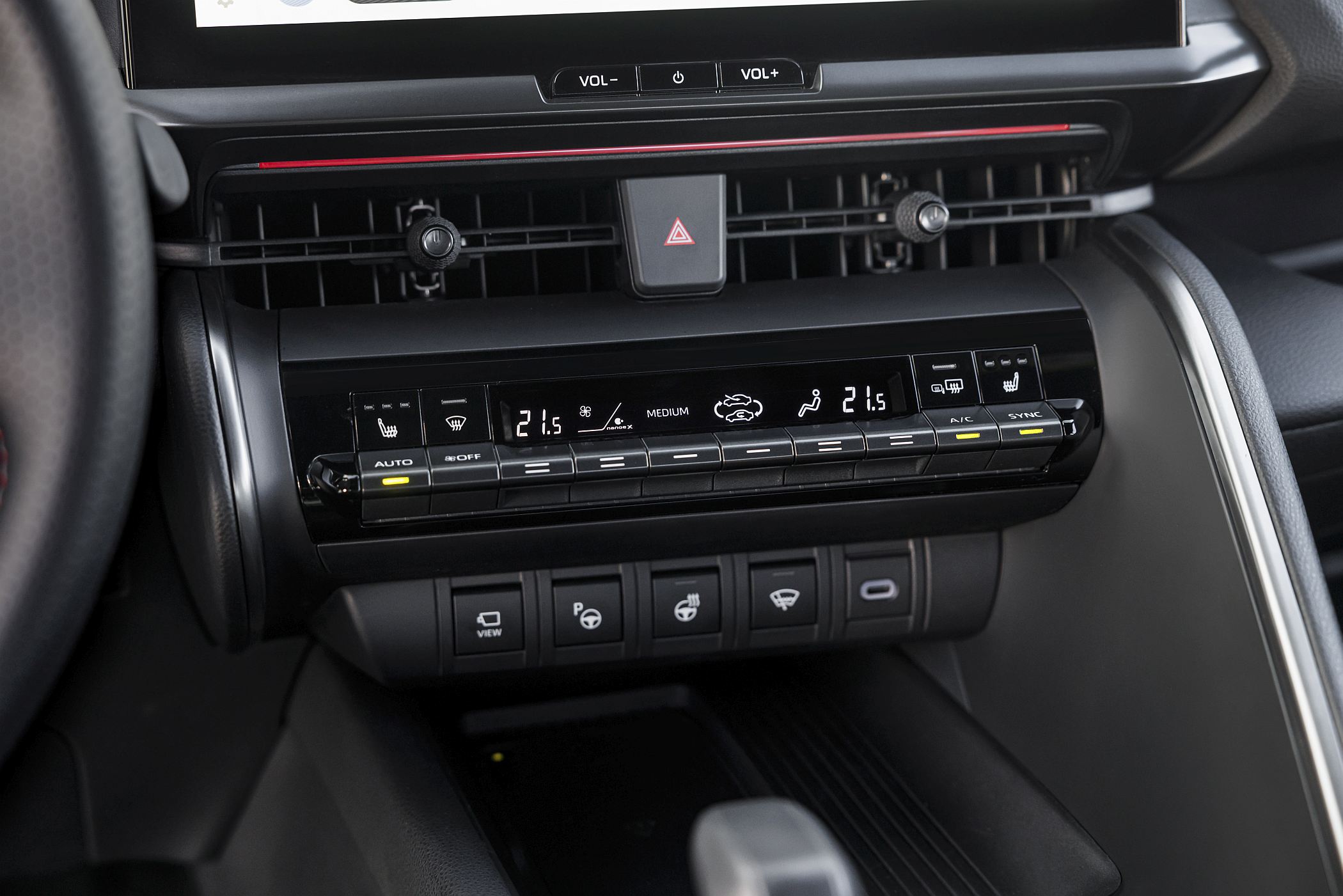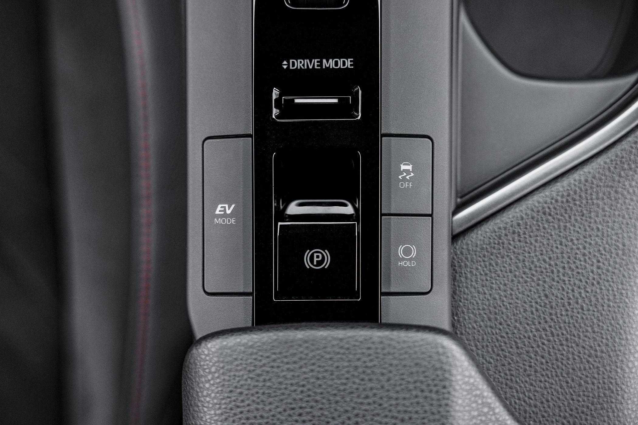 Entre os dois bancos da frente estão ainda o seletor de condução e teclas para algumas funcionalidades específicas, como a do modo ‘EV’, que força o modo elétrico quando a carga da bateria é suficiente e a velocidade não é excessiva, ou a de alteração dos modos de condução, entre ‘Eco’ e ‘Sport’, podendo o condutor ainda personalizar as suas configurações preferidas.
