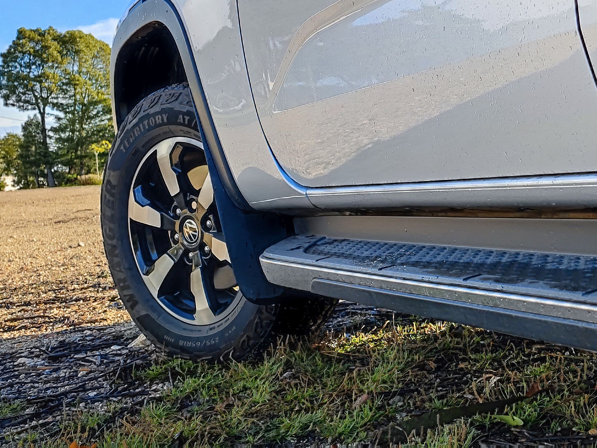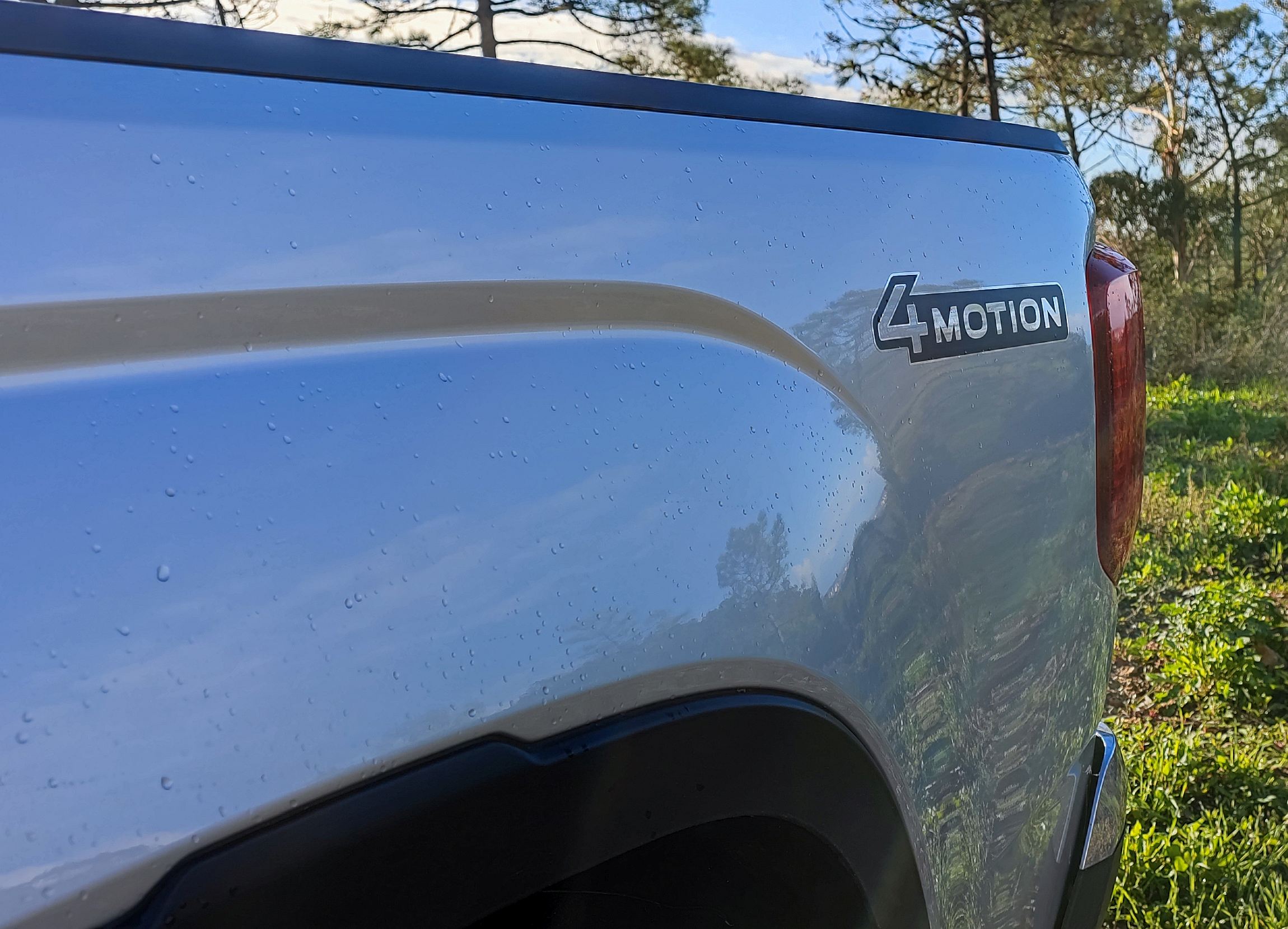Alternando entre os modos de condução e até jogando alternativamente com o seletor rotativo do sistema 4Motion entre os bancos, o Amarok ganha competências suplementares que são muito bem-vindas, sobretudo quando o levamos por muito maus caminhos. O nível de tração é francamente bom, mesmo quando desafiado por sulcos alagados mais profundos que resultam num ‘festim’ de lama a voar pelas laterais. Os ângulos de ataque (30º) e de saída (23º) também proporcionam alívio nos terrenos mais complicados.