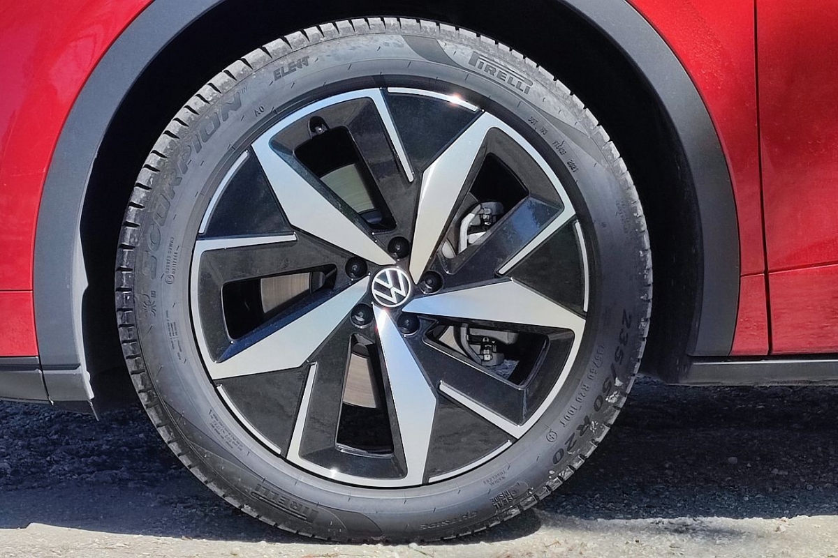 Contrariando algumas expectativas, a Volkswagen preferiu não mexer muito na estética do ID.4, mantendo o formato SUV aplicando apenas algumas diferenças, como as grelhas dianteiras com outro padrão, incluindo três luzes diurnas LED em casa lado, enquanto as jantes ‘Ystad’ de 20 polegadas de diâmetro são próprias deste modelo, estando dotado de pneus mais largos no eixo traseiro (255/45 R20 atrás contra 235/50 R20 à frente).