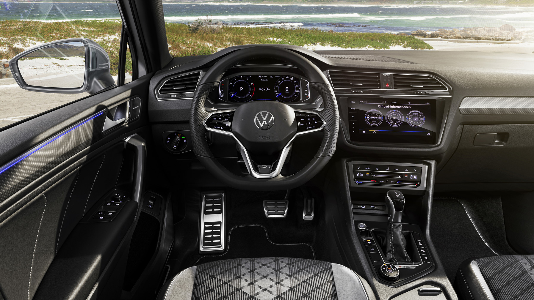 Bem equipado de série e com preços a partir dos 41.372€, o Tiguan Allspace ganha maior presença com o nível de equipamento R-Line, que lhe atribui a alma vincadamente mais desportiva, com elementos como o volante em pele específico, bancos específicos com logótipos decorativos, aplicações em ‘Carbon Grey’, sistema Digital Cockpit Pro de 10 polegadas e jantes de 19 polegadas. Naturalmente, o preço firma-se já nos 53.650€, o que não é propriamente acessível, mas o conjunto de tecnologias compensa.