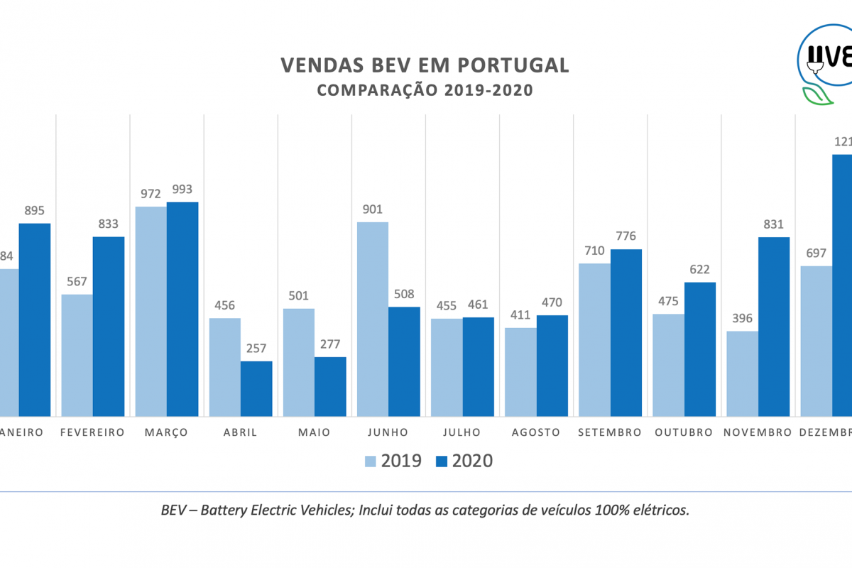 Numa análise exclusiva às vendas dos veículos 100% elétricos (BEV), a UVE assinala que, após quatro meses de quedas, fruto do estado de emergência em que o país viveu, as vendas dos BEV registaram uma forte recuperação, atingindo um aumento de 126% em novembro e de 71,4% em dezembro, tendo havido subidas em oito dos doze meses.