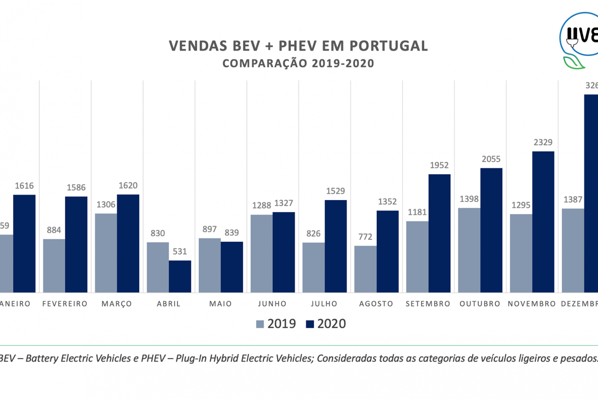 A Associação de Utilizadores de Veículos Elétricos (UVE) considera 2020 como o ano do grande arranque e consolidação das vendas de Veículos Elétricos em Portugal, tendo sido ultrapassada a fasquia das 20.000 unidades comercializadas, entre unidades 100% elétricas (BEV) e híbridos Plug-in (PHEV).