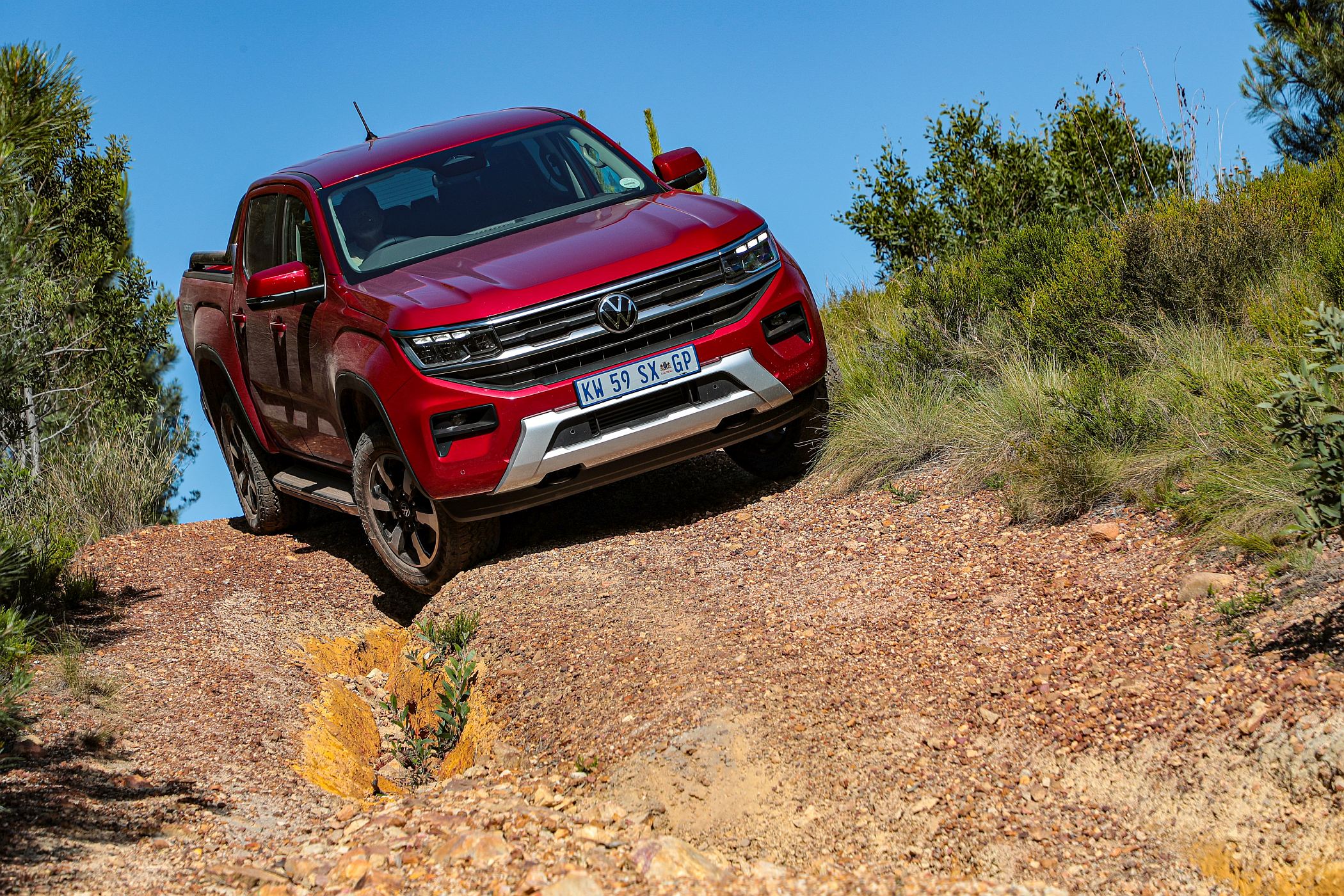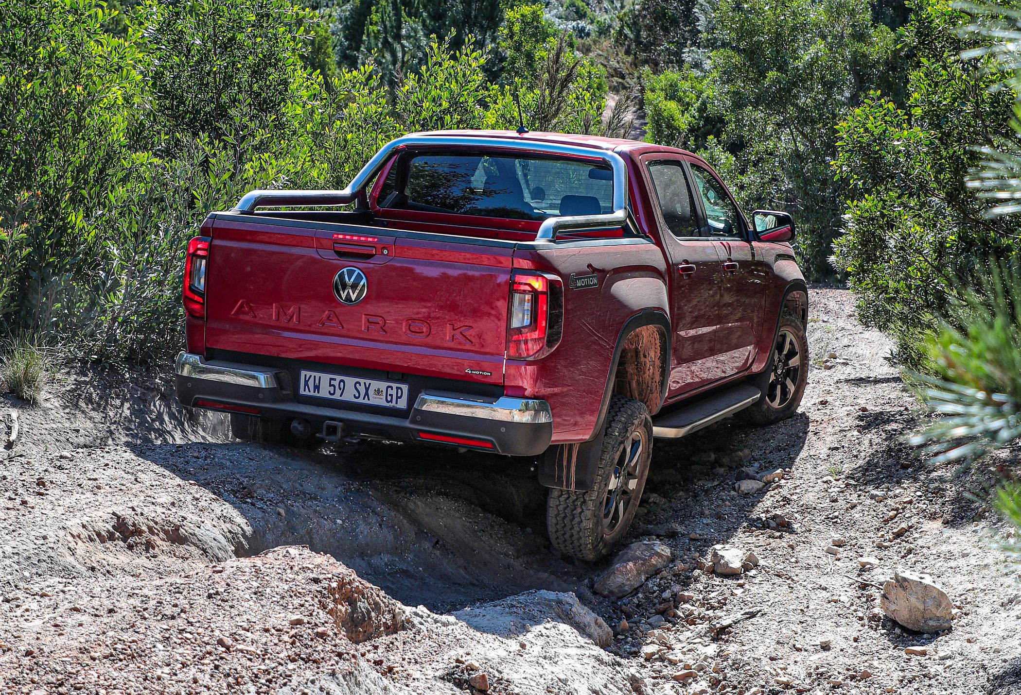 Em todos os caminhos, fossem subidas íngremes ou trilhos pejados de pedras, o Volkswagen Amarok mostrou sempre uma força “determinada” e um conforto e uma suavidade que atestam bem da qualidade da suspensão. Melhorados foram também os ângulos de ataque e de saída (29° à frente e de 21° atrás). Duas europaletes podem ser carregadas no espaço de carga, que possui várias coberturas com abertura elétrica ou manual.