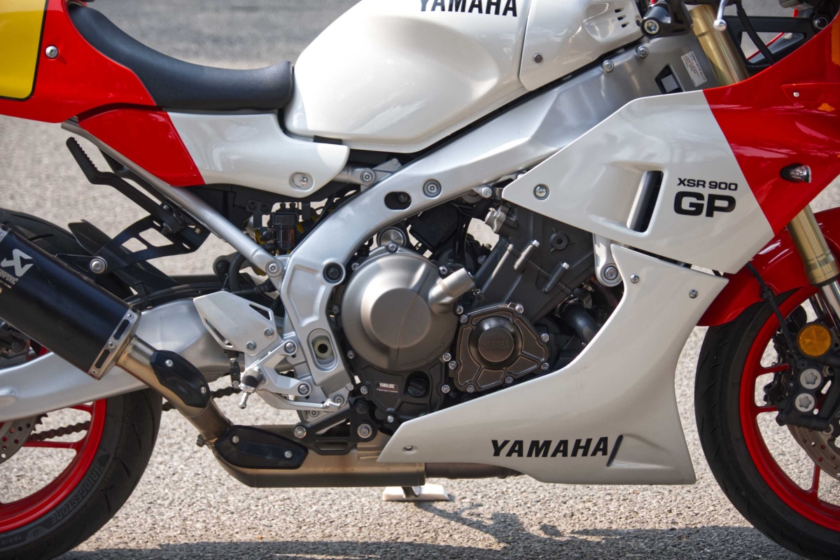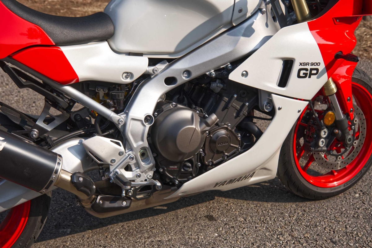 A XSR900 GP presta homenagem ao passado da Yamaha com um farol LED dianteiro mínimo, o suporte da carenagem no cockpit (um aceno para a TZ250) é absolutamente clássico, uma secção traseira elegante e uma carenagem de estilo de competição, tudo isto trabalhado com atenção aos detalhes. A pintura retro é inspirada nas mais emblemáticas cores de Grande Prix da Yamaha de todos os tempos, a XSR900 GP está disponível numa decoração inspirada nas máquinas conduzidas por pilotos como Wayne Rainey em vários campeonatos do mundo na categoria de 500 cc na década de 1980 e início da década de 1990. Incluindo placas de números amarelas tanto na carenagem dianteira como traseira, abraçando as raízes desportivas da Yamaha.