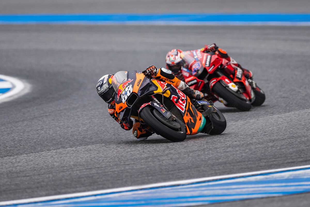 A temperatura elevada, numa corrida molhada e exigente, foi o cenário estabelecido no grande prémio da Tailândia para que o piloto português da equipa de fábrica Red Bull KTM levasse a sua moto ao pódio pela segunda vez em 2022, e pela quinta vez na sua carreira na classe rainha.