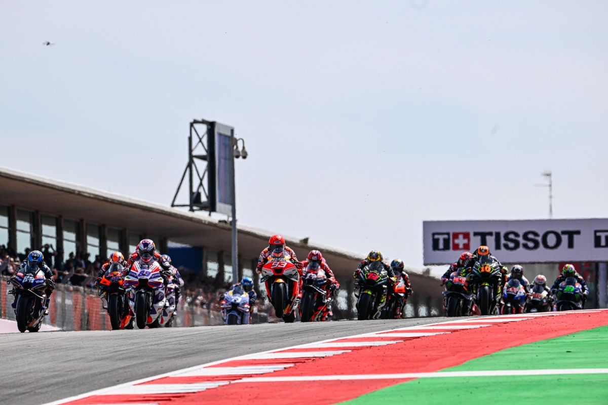O campeão do mundo Francesco Bagnaia tinha sido o vencedor no dia anterior e desta feita com o dobro das voltas e mais dez quilos de peso nas motos – mais dez litros de combustível nos depósitos – a história poderia ser totalmente diferente. Marc Marquez arrancou na frente mas ainda na primeira passagem pelos 4592 metros do circuito algarvio Miguel Oliveira levantou as bancadas ao assumir a primeira posição aos comandos da sua Aprilia.
