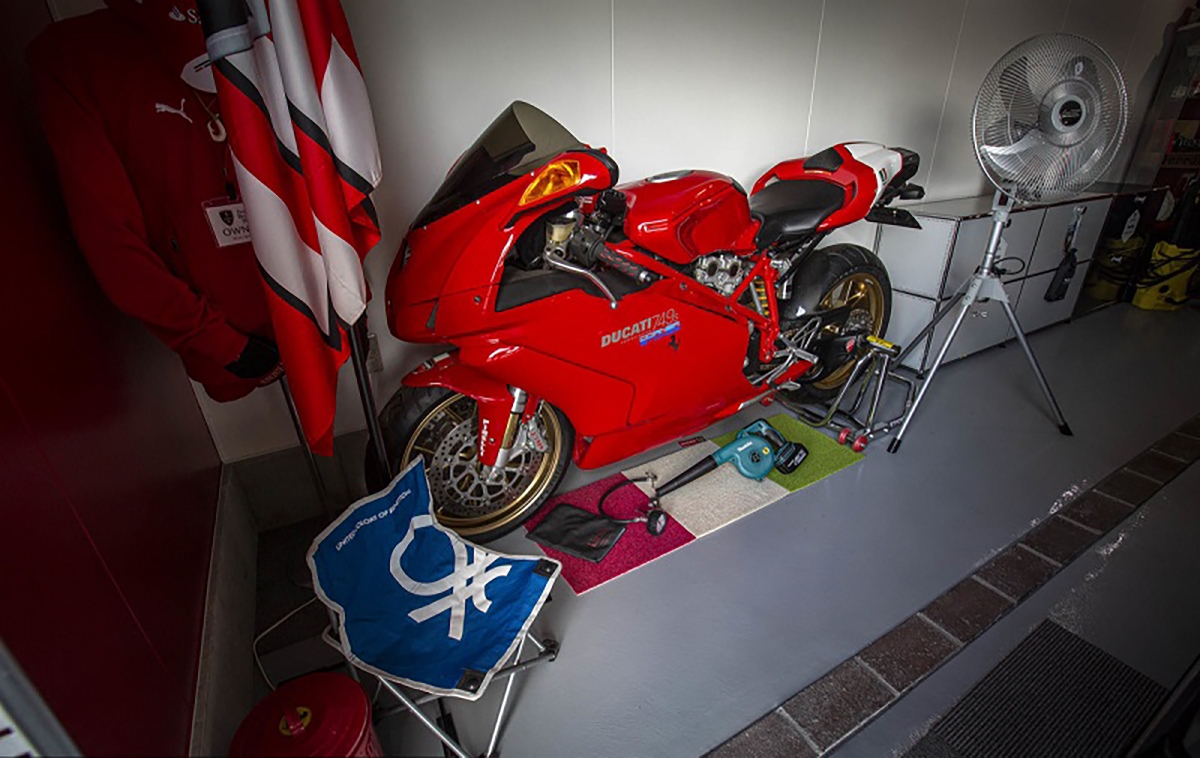 A colecção vai da Alemanha para Itália, pois os restantes automóveis são oriundos do país da bota. Logo à entrada da garagem, está presente uma Ducati 749 S, equipada com o motor V-Twin de 748cc com sistema desmodrómico, que debita cerca de 108cv às 10.000 rotações por minuto.
