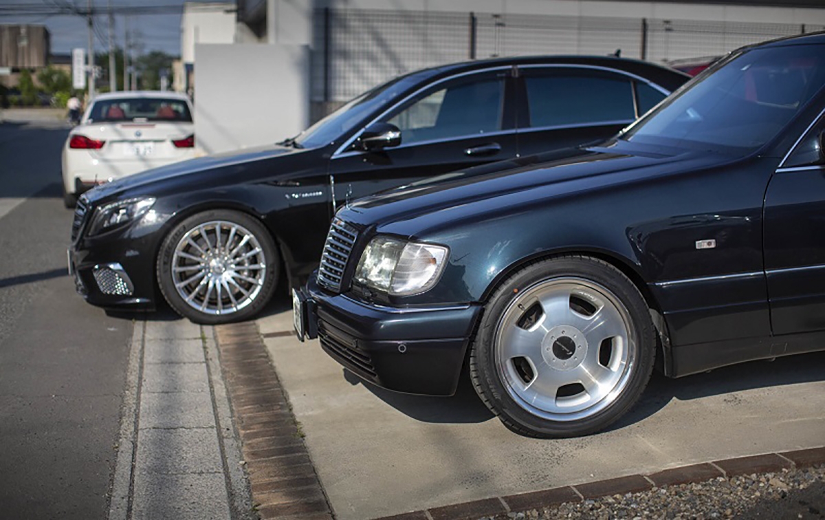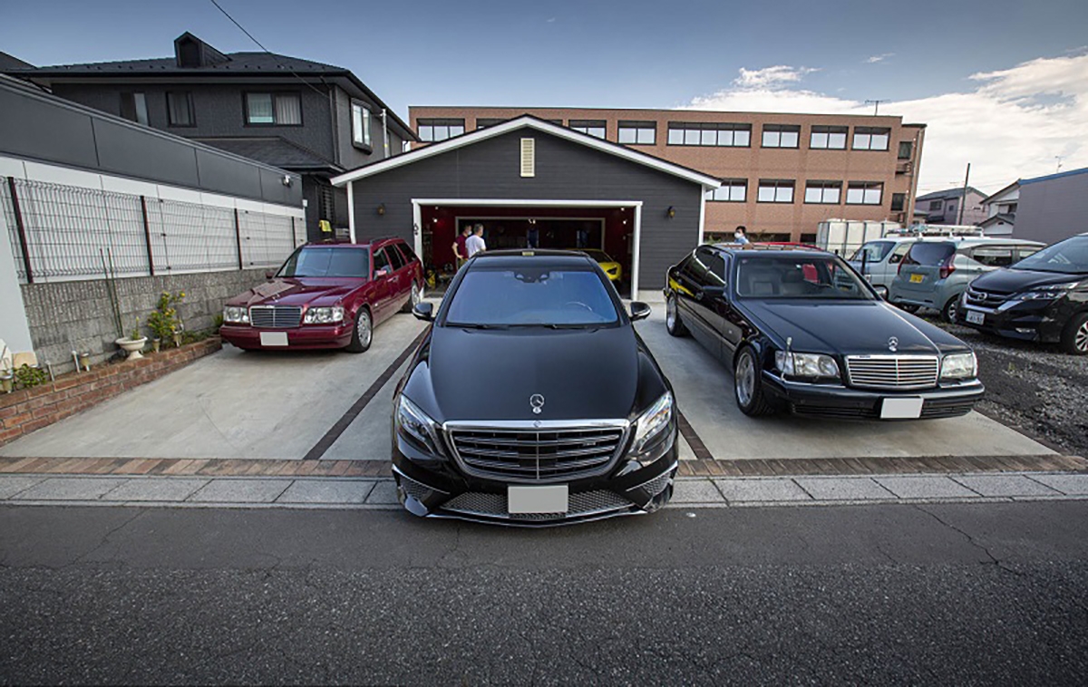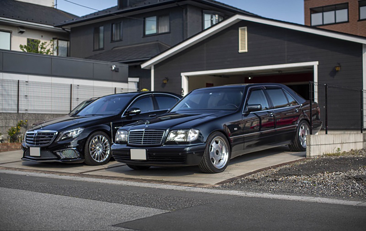 Para começar, Fujiyama-san tem uma grande paixão por automóveis da Mercedes-Benz, tendo na sua posse três modelos. Para começar, uma carrinha E 280 W124, equipada com o motor de seis cilindros em linha e 2,8 litros de cilindrada. Segue-se o imponente S 600 W140, equipado com jantes da Lorinser e com o motor M120 V12 de seis litros de cilindrada. Este motor foi a base que a AMG utilizou para desenvolver o motor que equipou o Pagani Zonda. Para terminar os automóveis da marca da estrela, o automóvel mais recente é o Mercedes-Benz S65 AMG W222, também equipado com um motor V12 biturbo e seis litros de cilindrada.