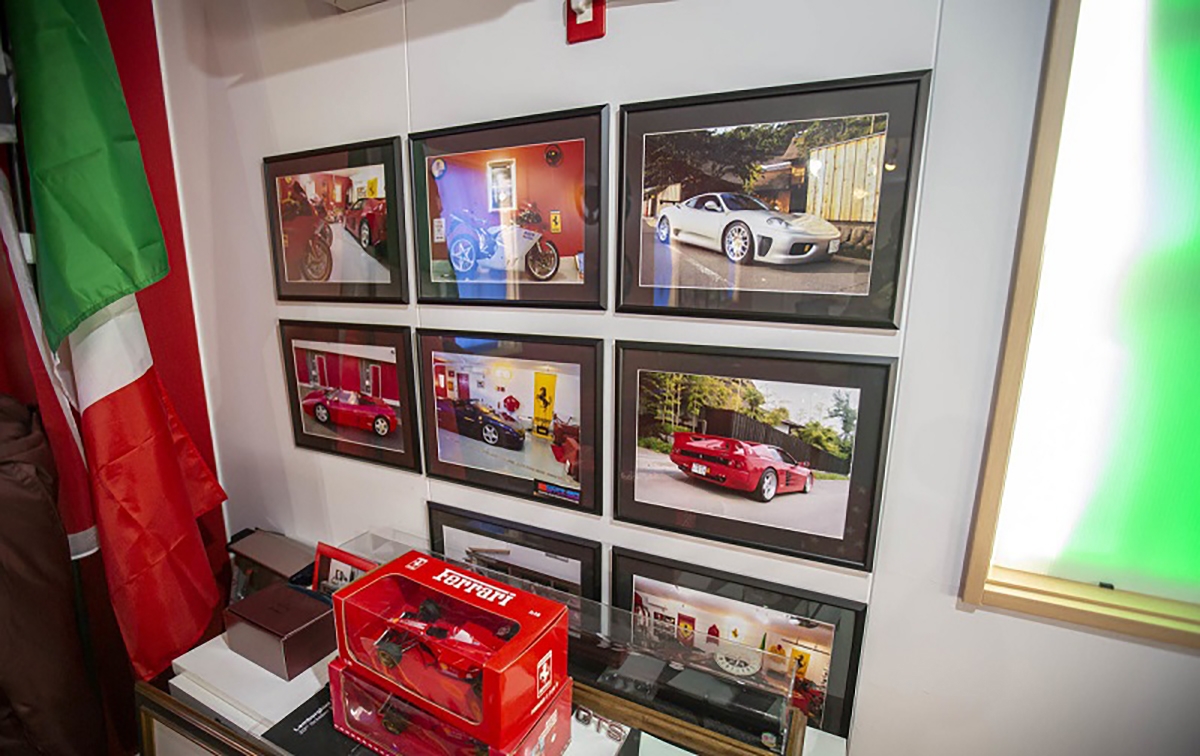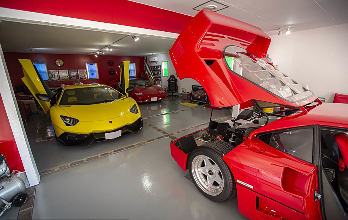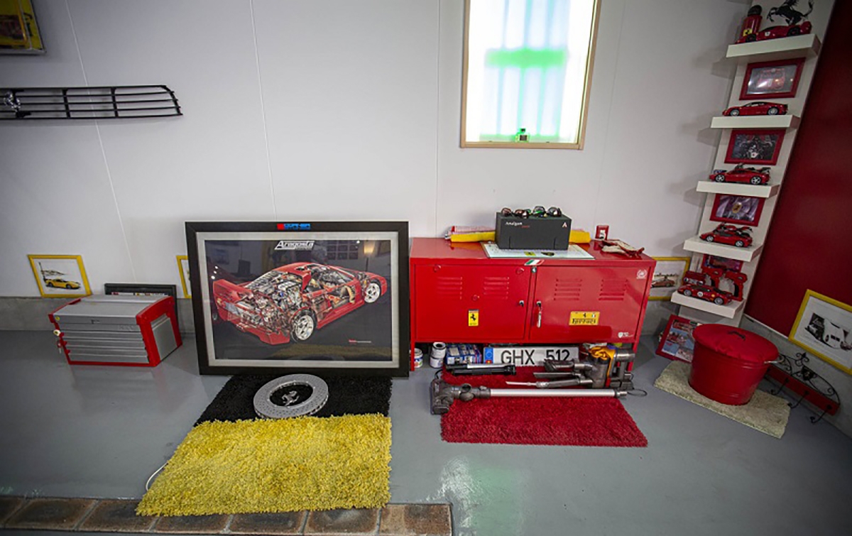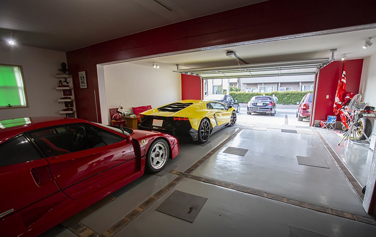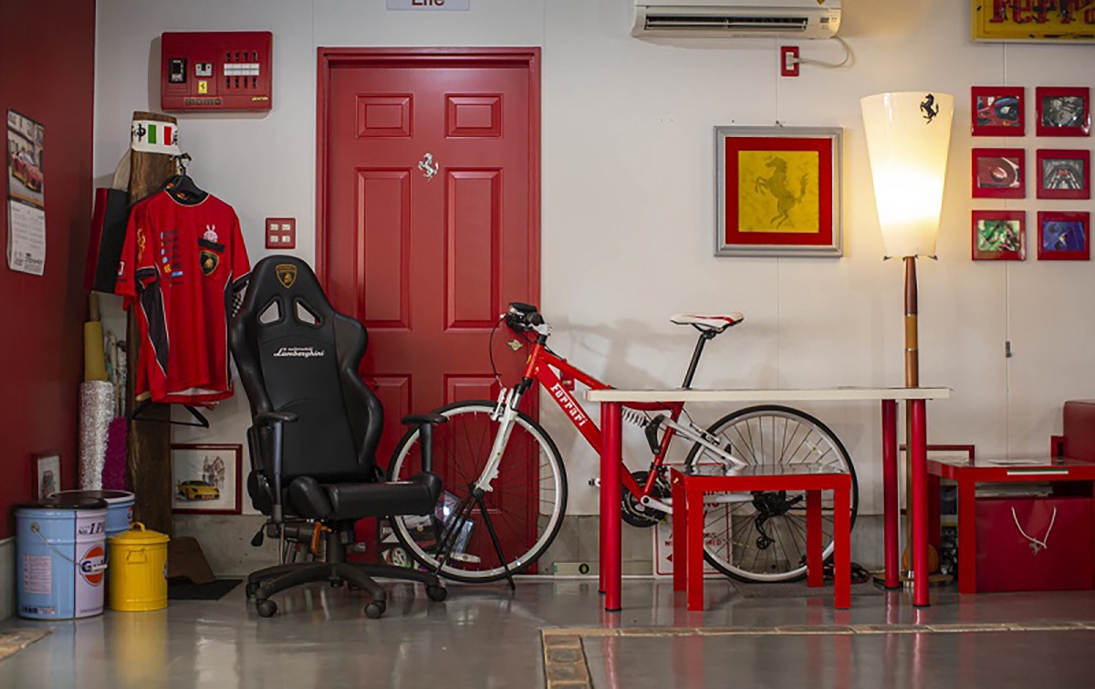 Passando por alguma automobilia e decoração, podemos ver a porta que dá acesso à casa de Fujiyama-san que é uma réplica da mesma porta da casa de Enzo Ferrari na antiga fábrica de Maranello. Outro exemplo de atenção ao detalhe, é o quadro da luz, que foi construído para se parecer com a tampa de um motor. Também é possível ver várias fotografias em quadros dos automóveis que Fujiyama-san teve, entre eles destaca-se o Ferrari Testarossa preparado pela Koenig. Outros elementos que chamam à atenção, são peças de automóveis Ferrari a servir de decoração, como uma grelha traseira de um Ferrari 348 e vários volantes de automóveis da marca do Cavalino Rampante.