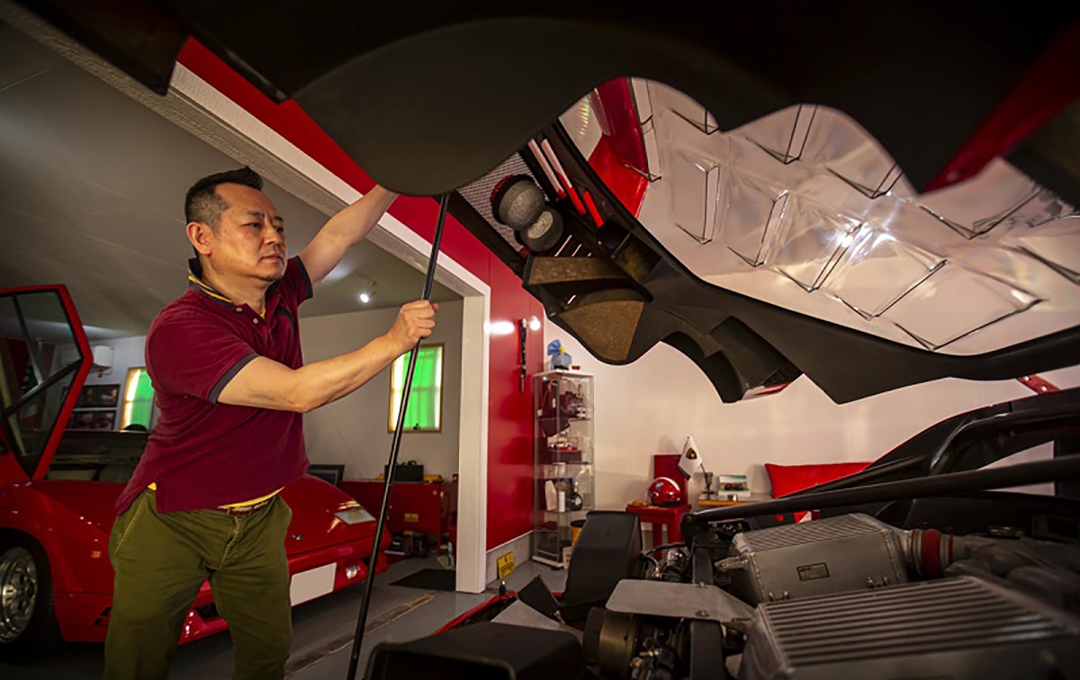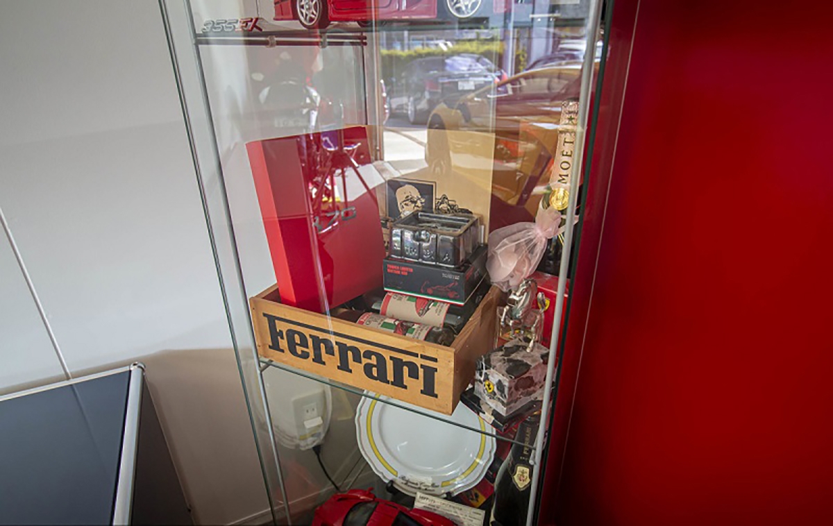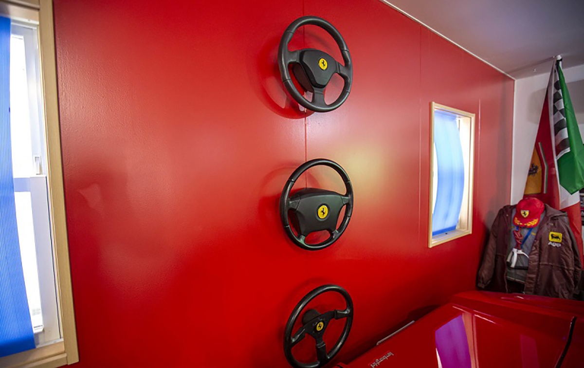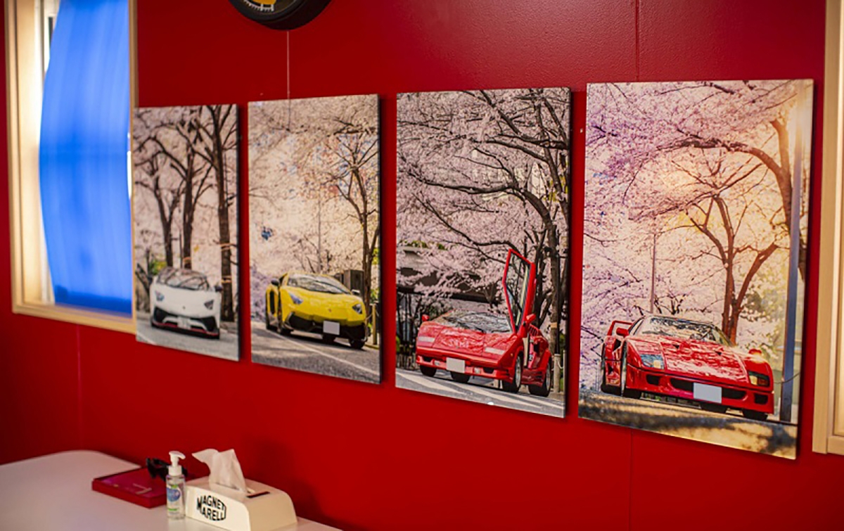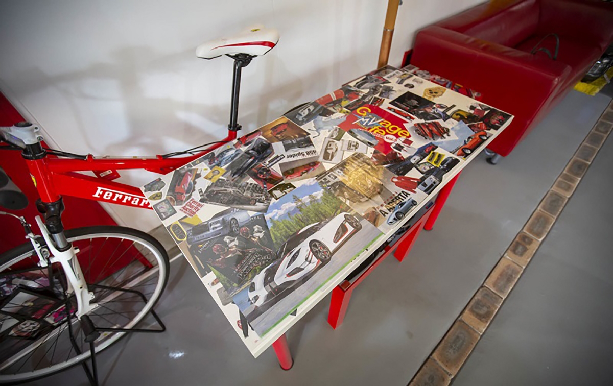 Passando por alguma automobilia e decoração, podemos ver a porta que dá acesso à casa de Fujiyama-san que é uma réplica da mesma porta da casa de Enzo Ferrari na antiga fábrica de Maranello. Outro exemplo de atenção ao detalhe, é o quadro da luz, que foi construído para se parecer com a tampa de um motor. Também é possível ver várias fotografias em quadros dos automóveis que Fujiyama-san teve, entre eles destaca-se o Ferrari Testarossa preparado pela Koenig. Outros elementos que chamam à atenção, são peças de automóveis Ferrari a servir de decoração, como uma grelha traseira de um Ferrari 348 e vários volantes de automóveis da marca do Cavalino Rampante.