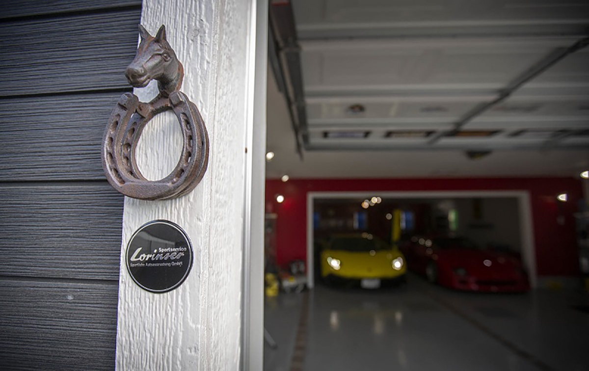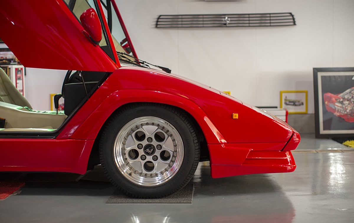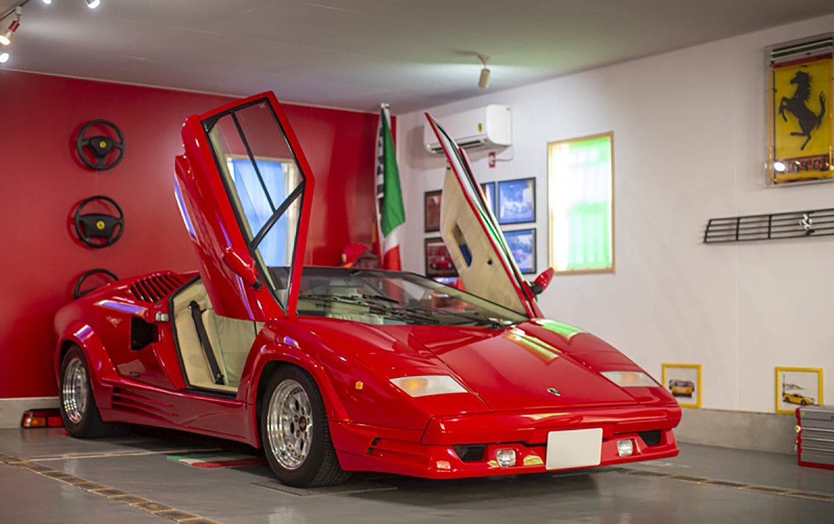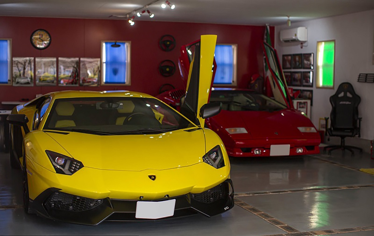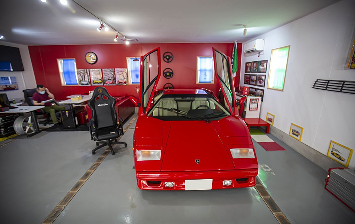 Ao fundo da garagem, encontra-se um Lamborghini Countach 25th Anniversary, modelo que tem um kit estético desenhado por Horacio Pagani. Para acompanhar esta edição rara do Countach, nada melhor que um Lamborghini Aventador 50th Anniversary, com uma combinação de cores idêntica no exterior e interior.