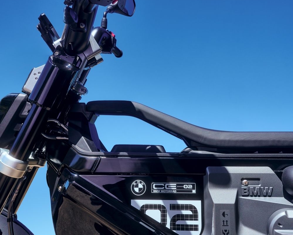 Em termos de estrutura, a nova BMW CE 02 conta com uma estrutura rígida de duplo anel, feita de aço tubular. À frente existe um garfo telescópico com amortecimento hidráulico, enquanto na traseira encontramos um braço oscilante unilateral e um monoamortecedor sem bielas. Os pneus largos são montados em rodas de liga leve fundidas em design de disco sólido, equipadas com travões de disco e ABS na roda dianteira.