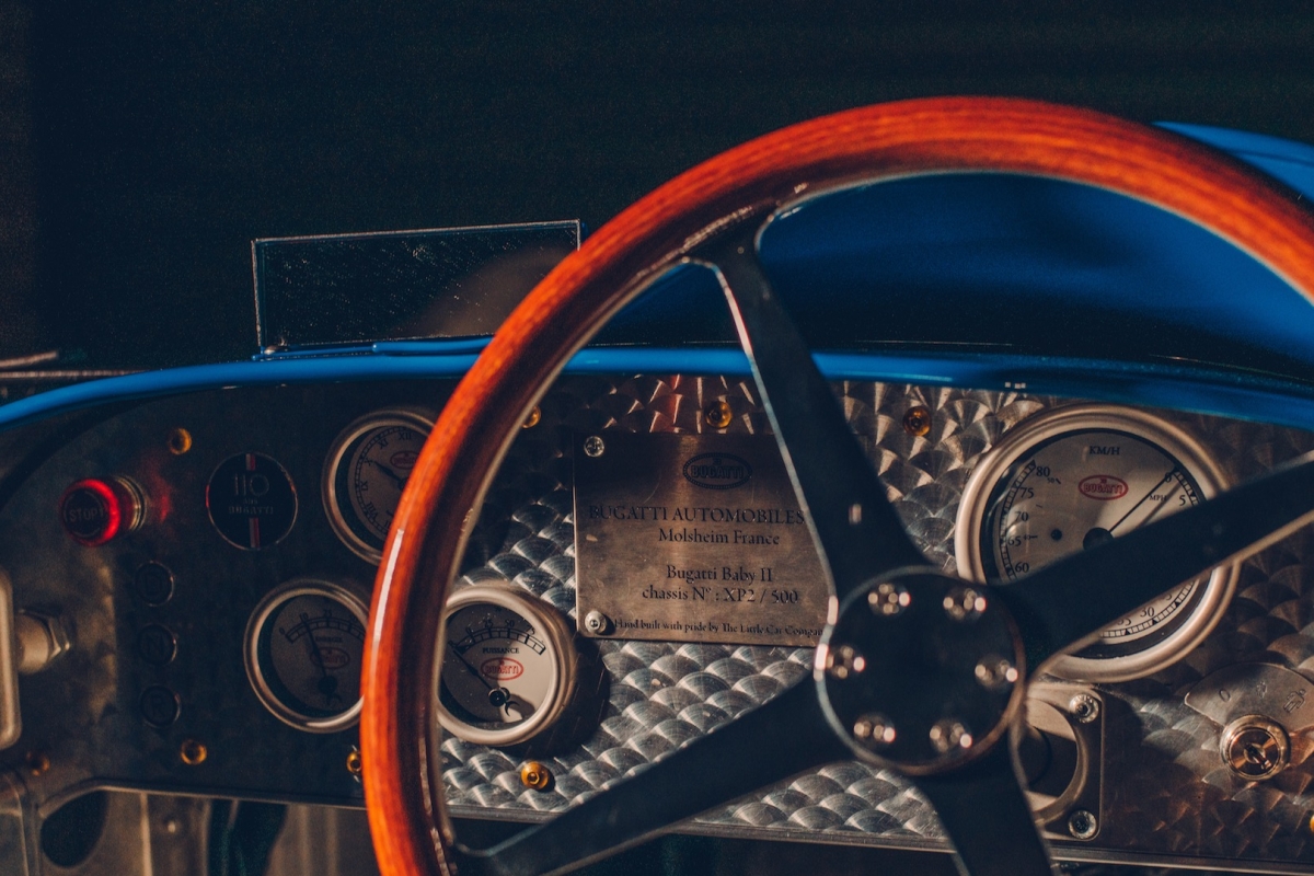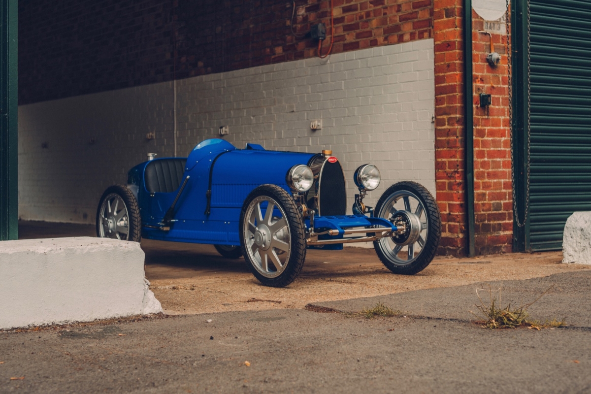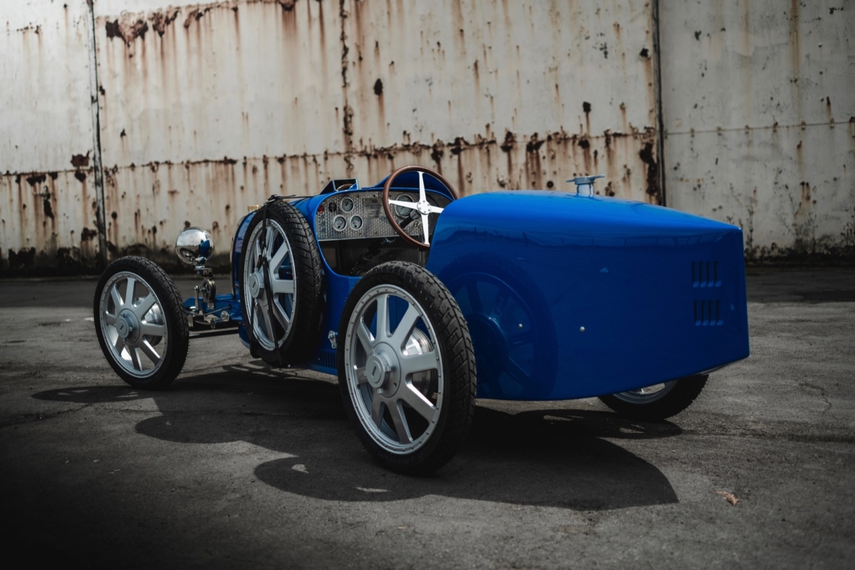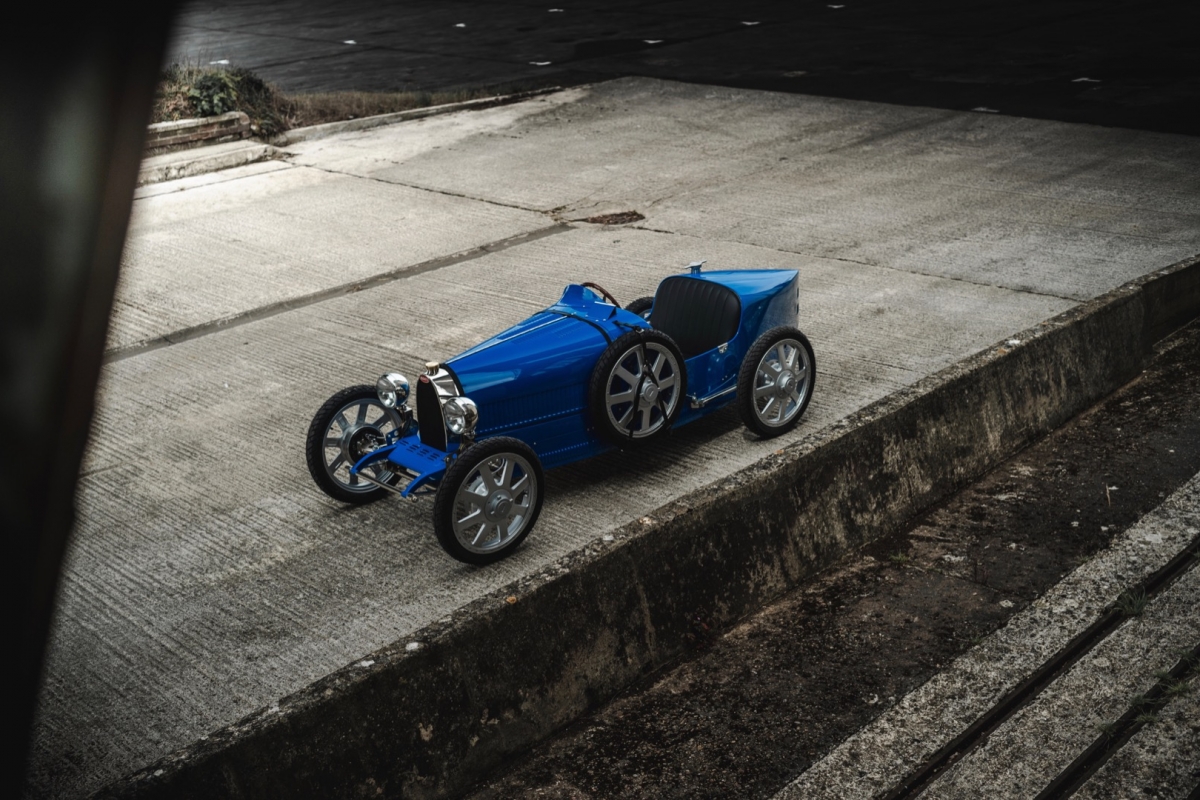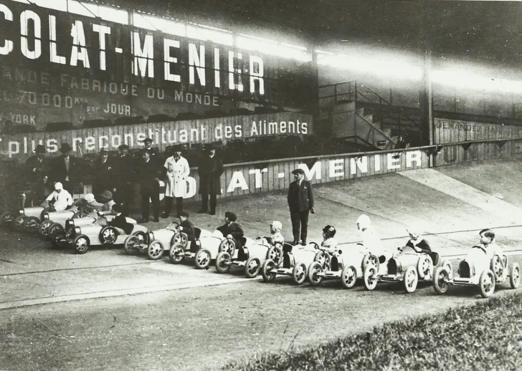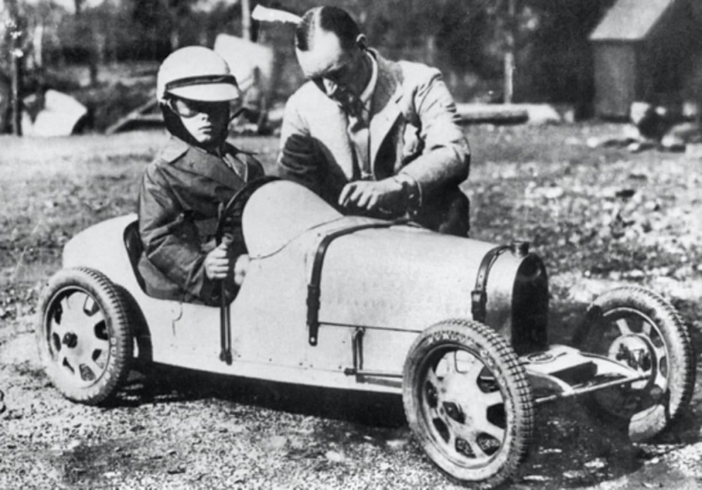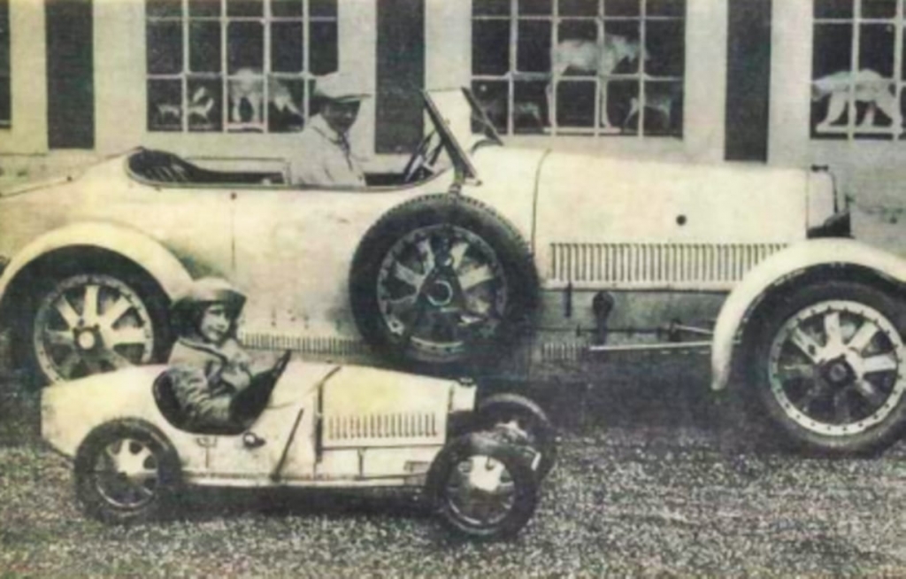 Em 1927 Ettore Bugatti elaborou e construiu o seu primeiro Bugatti “Baby”, com base e com metade do tamanho do Bugatti Type 35 Grand Prix como prenda de aniversário de seu filho Roland. Feito de alumínio e chapas de metal e que já incluía um painel de instrumentos, bancos de couro e um motor eléctrico de 12 volts conseguia atingir até 20km/h, conforme o estado da bateria.