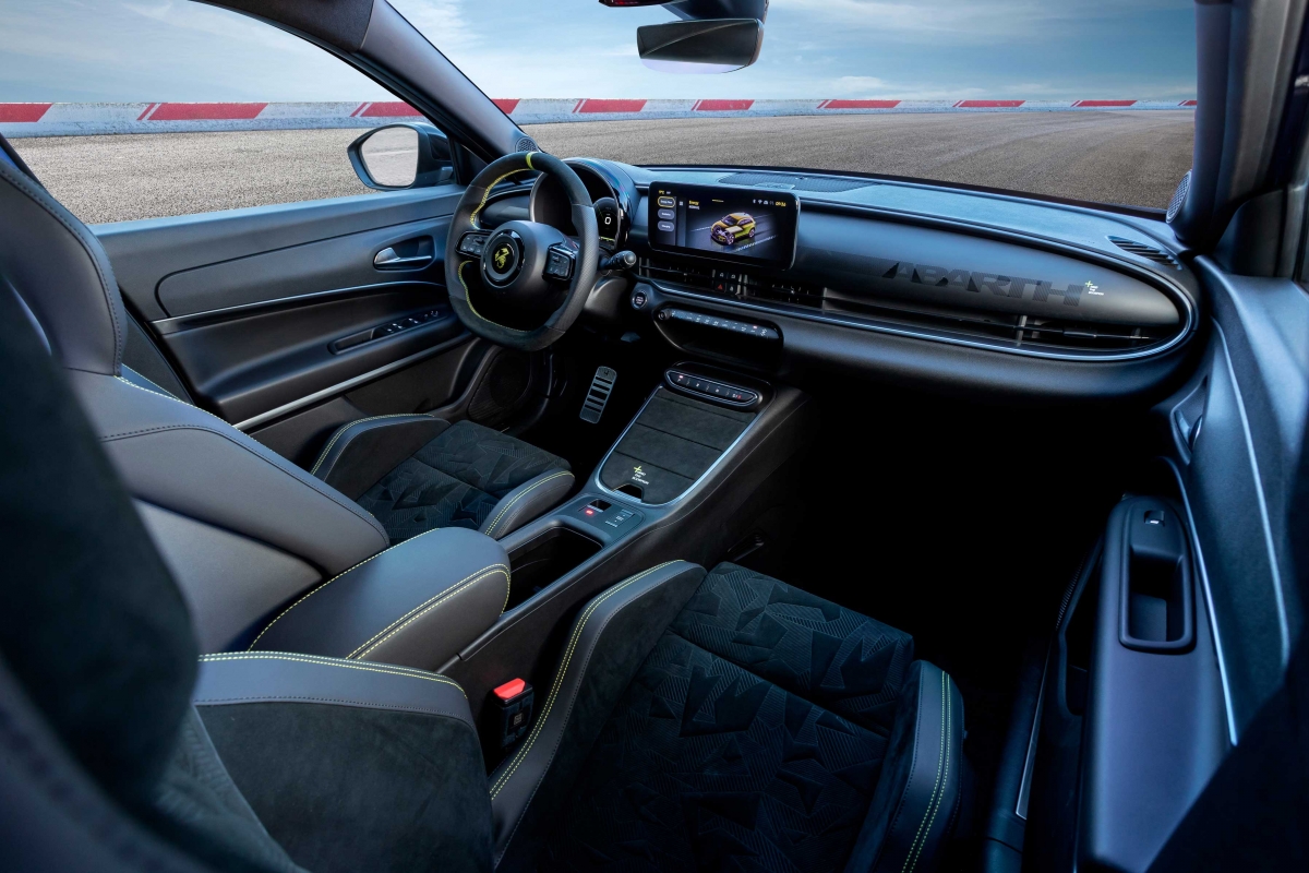 O equipamento inclui o sistema de infoentretenimento de 10″ com gráficos específicos da Abarth e ecrãs relacionados com o desempenho. O modelo também herda o “Gerador de Som” do Abarth 500e, produzindo ruídos falsos durante o arranque e a aceleração, assemelhando-se a um motor de combustão.