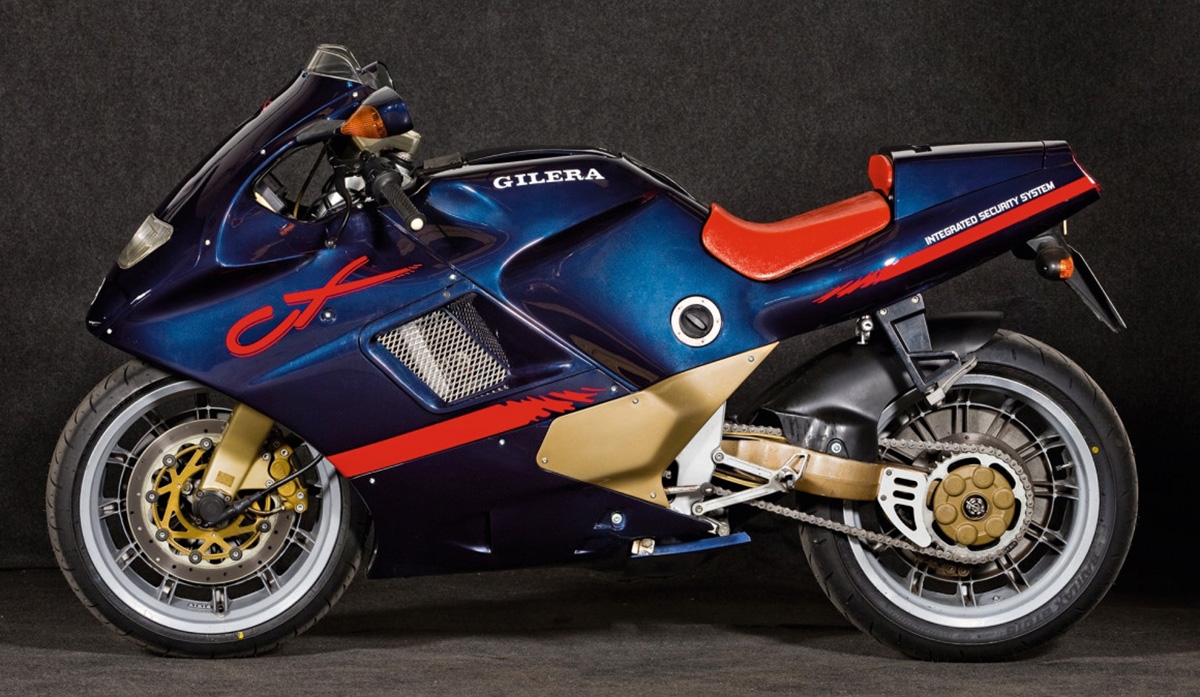 Outra criação fruto da genialidade italiana, mas em que os resultados ficaram muito aquém do esperado, mesmo tratando-se de uma 125 cc. A carenagem integral, o monobraço dianteiro e traseiro ou as jantes quase opacas são alguns dos seus principais traços distintivos. Iniciou o seu ciclo de vida em 1991 e vinha com uma estética excêntrica, com destaque para a carenagem frontal e um coeficiente de penetração baixo, mas isso não foi suficiente. O sucesso nunca foi o esperado e o comportamento dinâmico ficou bastante aquém do previsto. Além disso, sempre foi “acusada” de ser uma versão da Gilera Crono com uma roupagem exótica e mais cara!