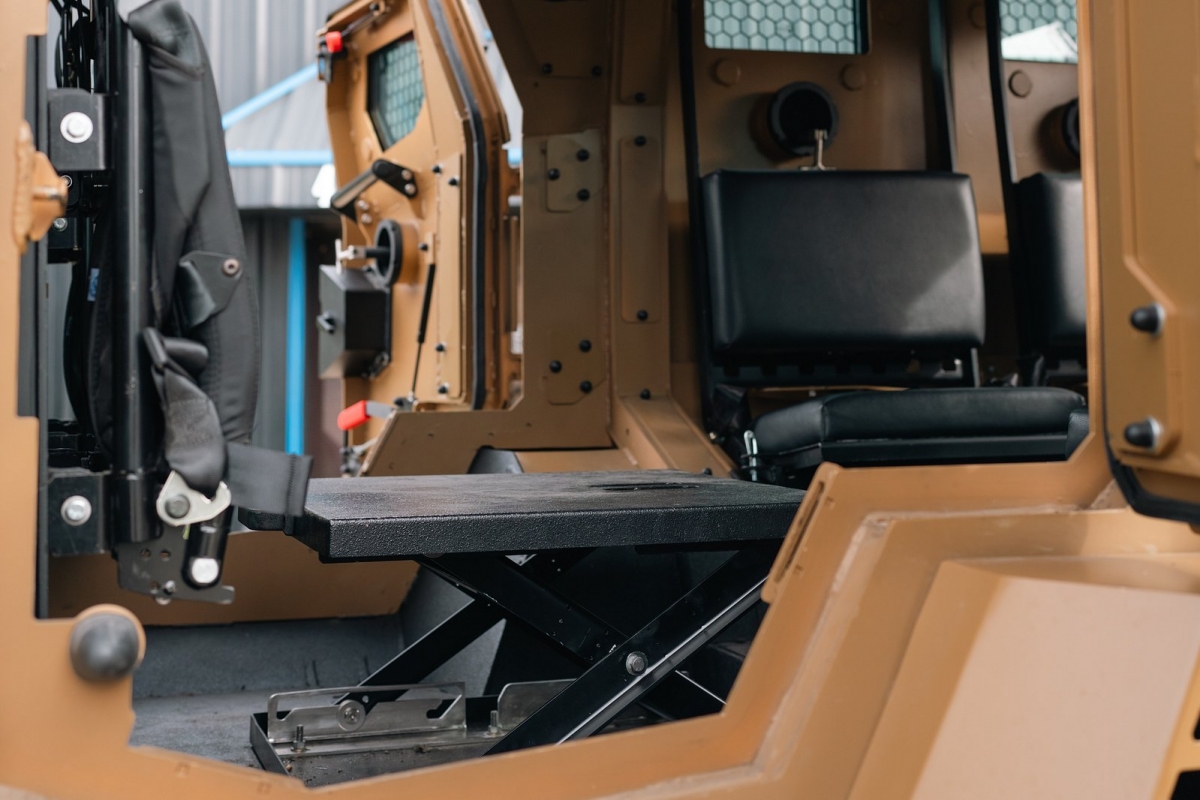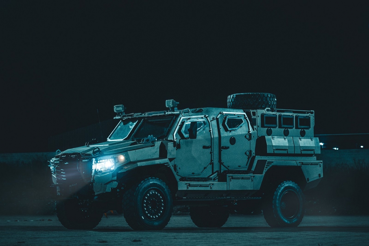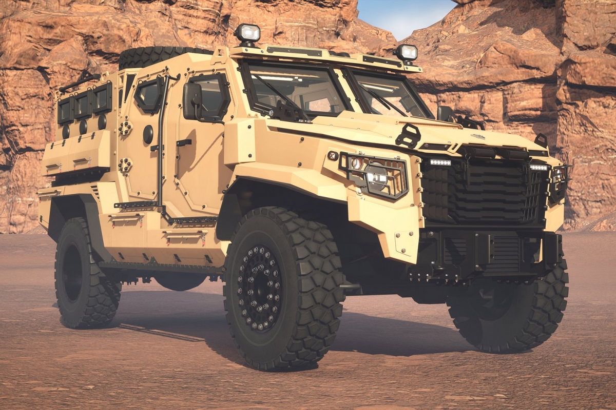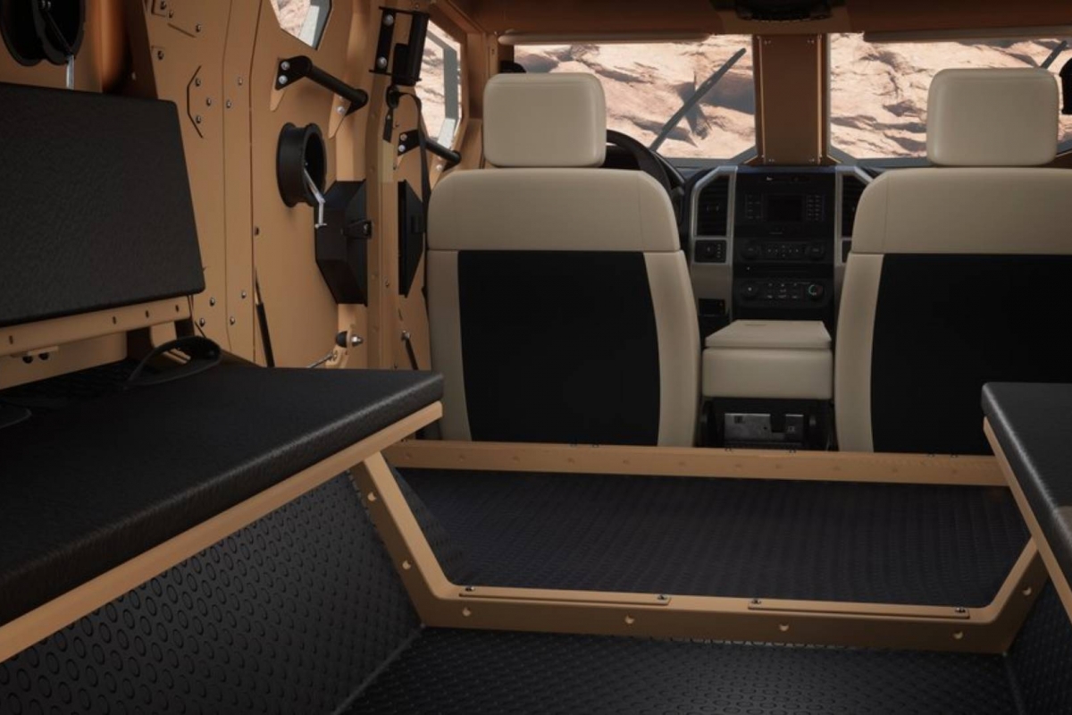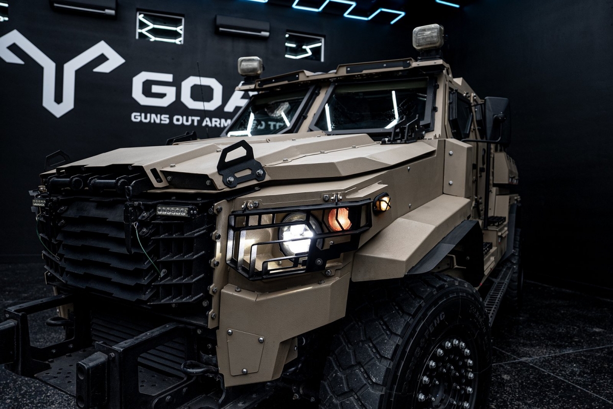 A base é sem tirar nem pôr a de um veículo militar, transformado pela Goat Tactical Vehicles, empresa com sede nos Estados Unidos da América, onde é possível guiar o APC em estrada sem nenhum tipo de homologação especial. Custa cerca de 360.000 euros, mais do que um Ferrari novo, mas usa a plataforma arcaica do Ford F-550, mede 6,32 metros de comprimento e tem 34 cm de altura ao solo, para um peso total que ultrapassa as 7 toneladas. O porte avantajado fica a dever-se às suas dimensões enormes, mas também à blindagem especial com nível de proteção balística B6 de série, e que, opcionalmente, pode ser melhorado para o nível B7. Ainda entre os itens especiais, pneus run-flat, sistema de sirene, proteção reforçada do motor e do radiador e janelas à prova de bala com 7 cm de espessura.