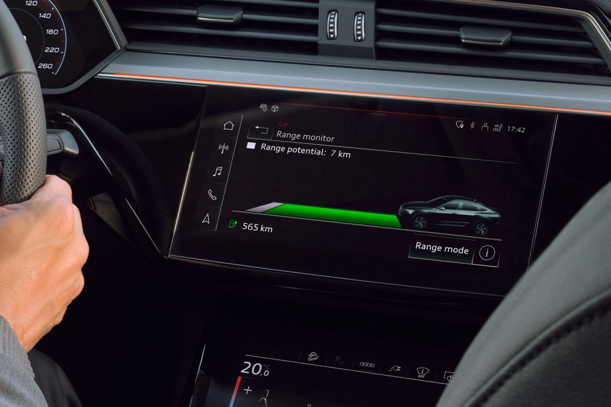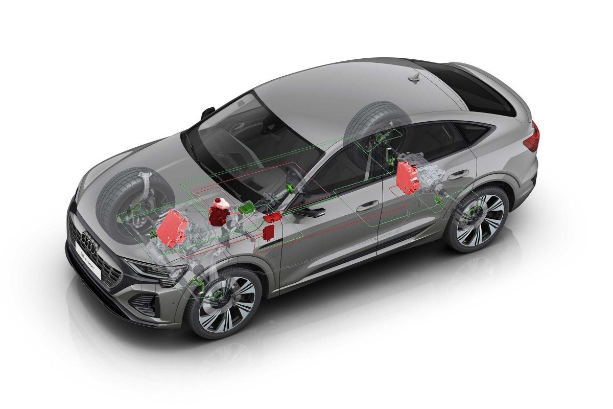 As maiores diferenças do Q8 e-tron para o e-tron concentram-se na sua cadeia cinemática, em que a bateria cresceu de capacidade, refletindo-se num maior alcance, e na redução dos tempos de carregamento.