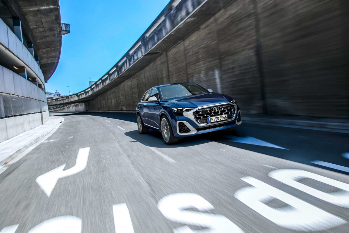 A versão mais desportiva assenta do SQ8 TFSI, que se distingue pelo spoiler redesenhado no para-choques dianteiro, bem como uma proteção inferior de aparência desportiva à frente e um expressivo difusor na traseira. A grelha Singleframe, destaca-se com as linhas verticais em forma de L e um design em favo de mel, bem coma as entradas de ar de maior dimensão.