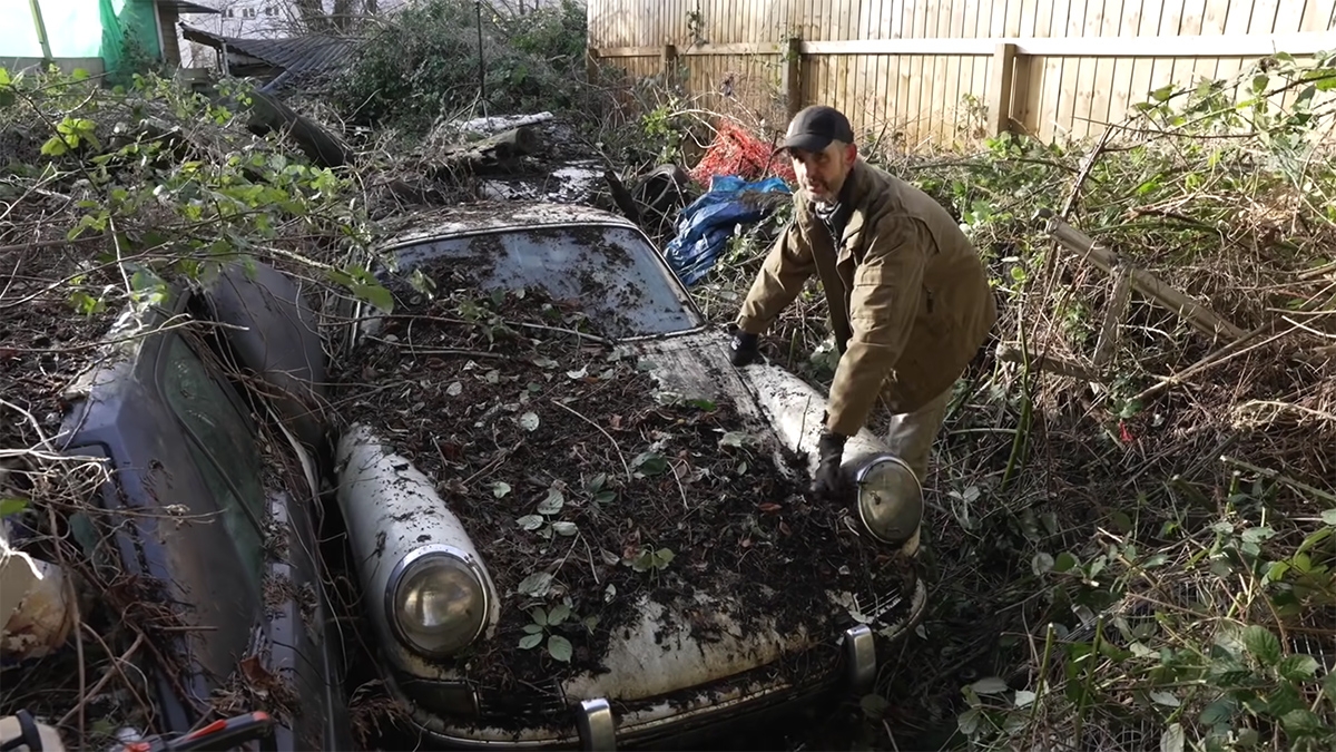 Jonny, o apresentador dos Barn Find do canal do YouTube The Late Brake Show foi convidado a visitar um jardim em Cardiff onde Rein, o proprietáro destes veículos tinha acumulado a sua colecção de automóveis clássicos ao longo dos anos.