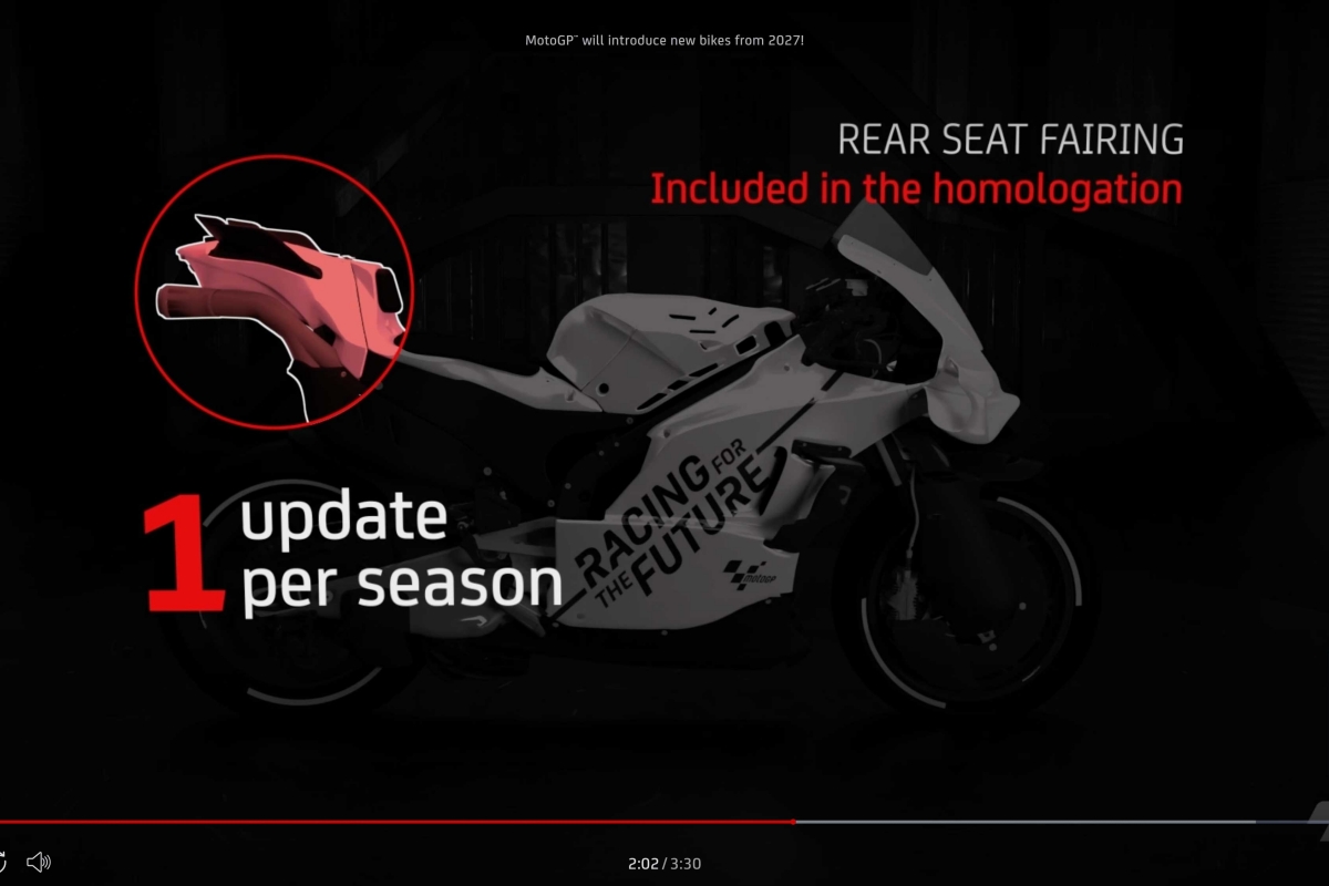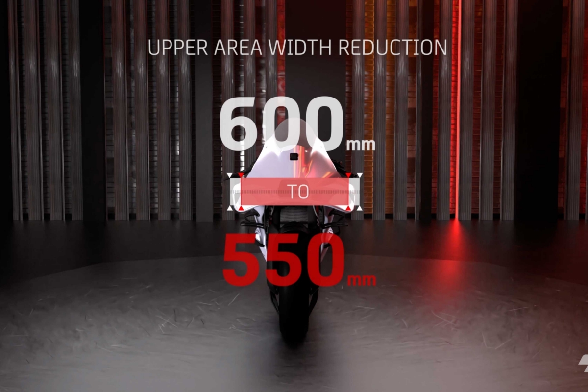Também aqui vão existir modificações relevantes, nomeadamente na dianteira da moto vai passar dos 600 mm atuais para 550 mm de largura. Além disso, na traseira da moto, também vão existir mais restrições aerodinâmicas e apenas pode ser feito um update em toda a época.