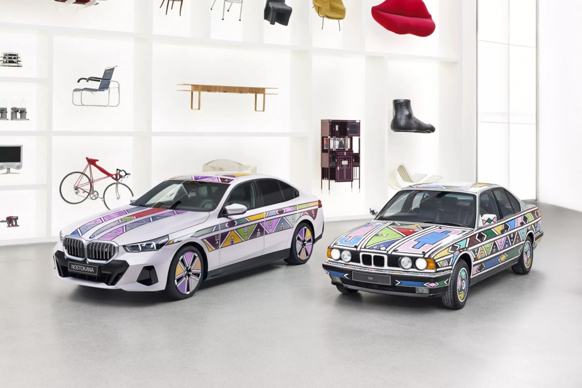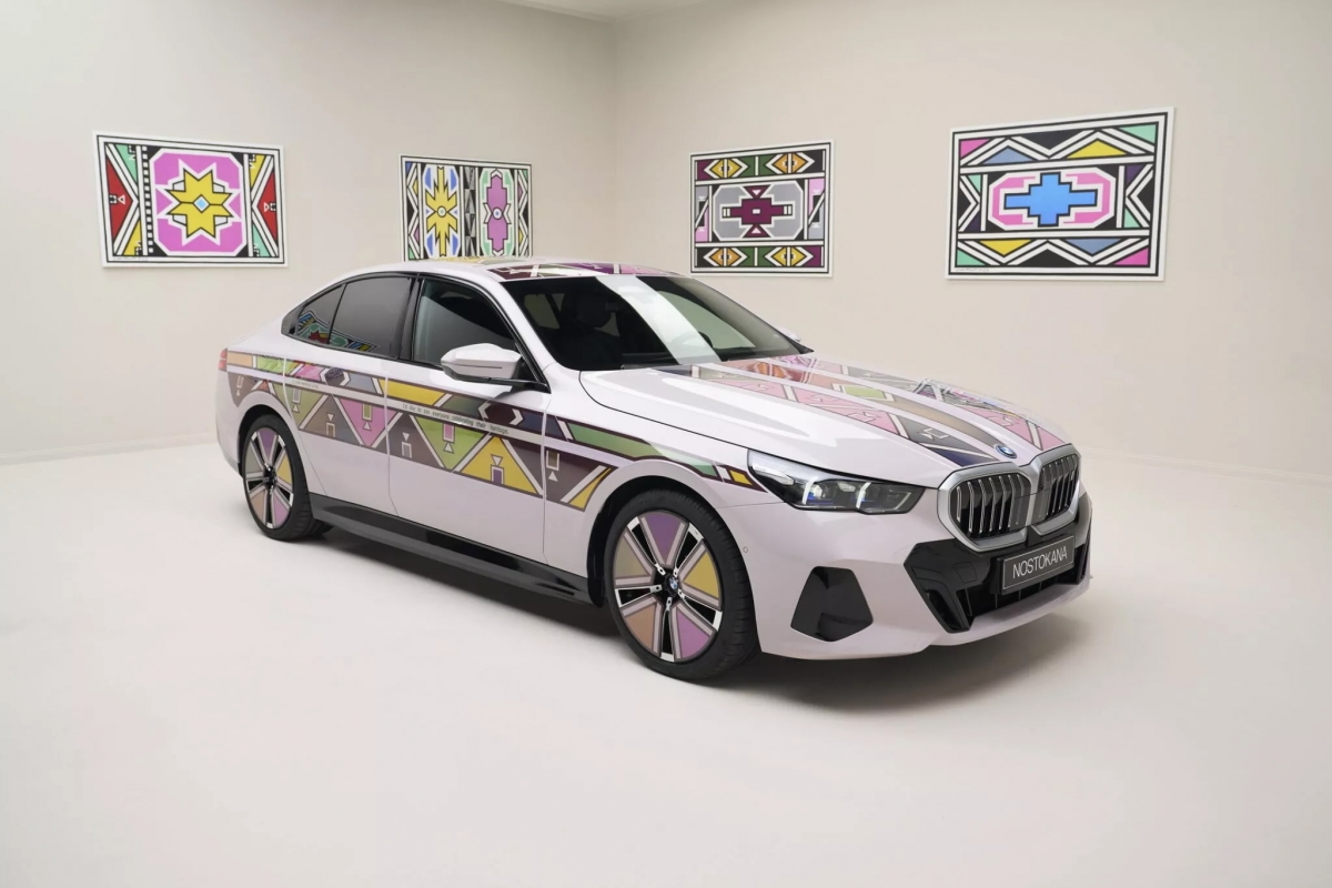 Inspirado no icónico BMW 525i Art Car da geração E34 de 1991, criado por Esther Mahlangu – a pioneira como a primeira mulher e a primeira artista africana a contribuir para a série – o BMW i5 Flow Nostokana de 2024 surge como o primeiro carro de arte com um design tão dinâmico como a tela sobre a qual é pintado.
