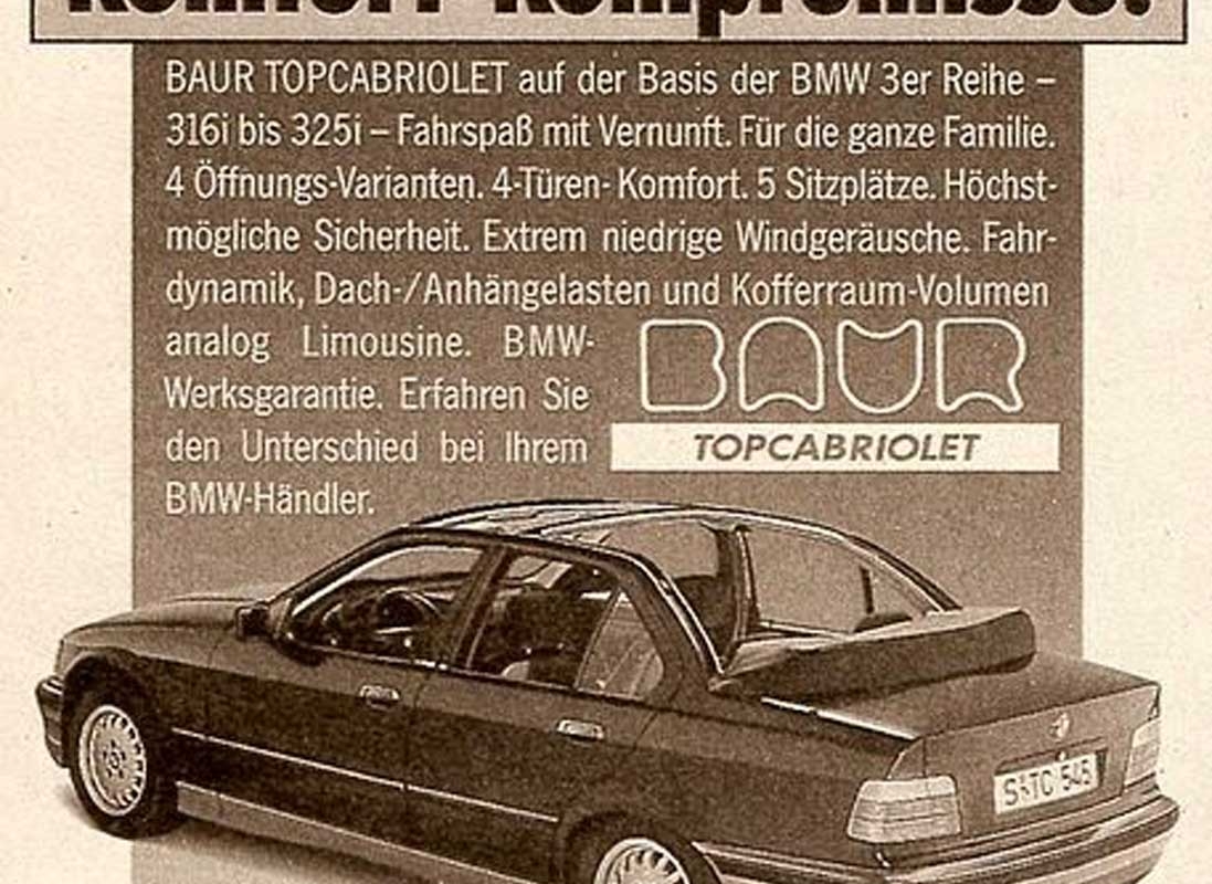 É então que com o E36, a BMW desenvolve a sua própria versão descapotável, sem a ajuda da Baur. Os donos da Baur, Heinz e Karl Baur, ainda assim produziram uma versão Top Cabriolet, diferente do que até então tinha sido construído. Como o E36 Cabriolet tinha por base a carroçaria coupé, a Baur pegou na berlina de quatro portas para o seu modelo TC4. A estrutura das portas manteve-se e foi adicionado um tecto de lona do meio para trás, com um painel de lona removível na frente.