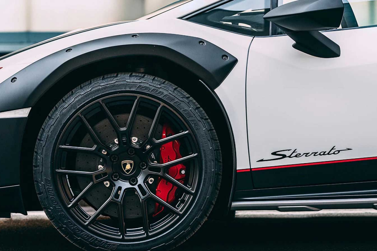 Estes pneus Bridgestone Dueler All-Terrain AT002, desenvolvidos sob medida, estão disponíveis em duas medidas: 235/40 ZR19 (96Y) XL RFT para as rodas dianteiras, e 285/40 ZR19 (107Y) XL RFT para a traseira. O Bridgestone Blizzak LM005 também estará disponível como opção pós-venda de Inverno para o Lamborghini Huracán Sterrato, disponível nas medidas 235/40 R19 96Y XL e 285/40 R19 107Y XL.