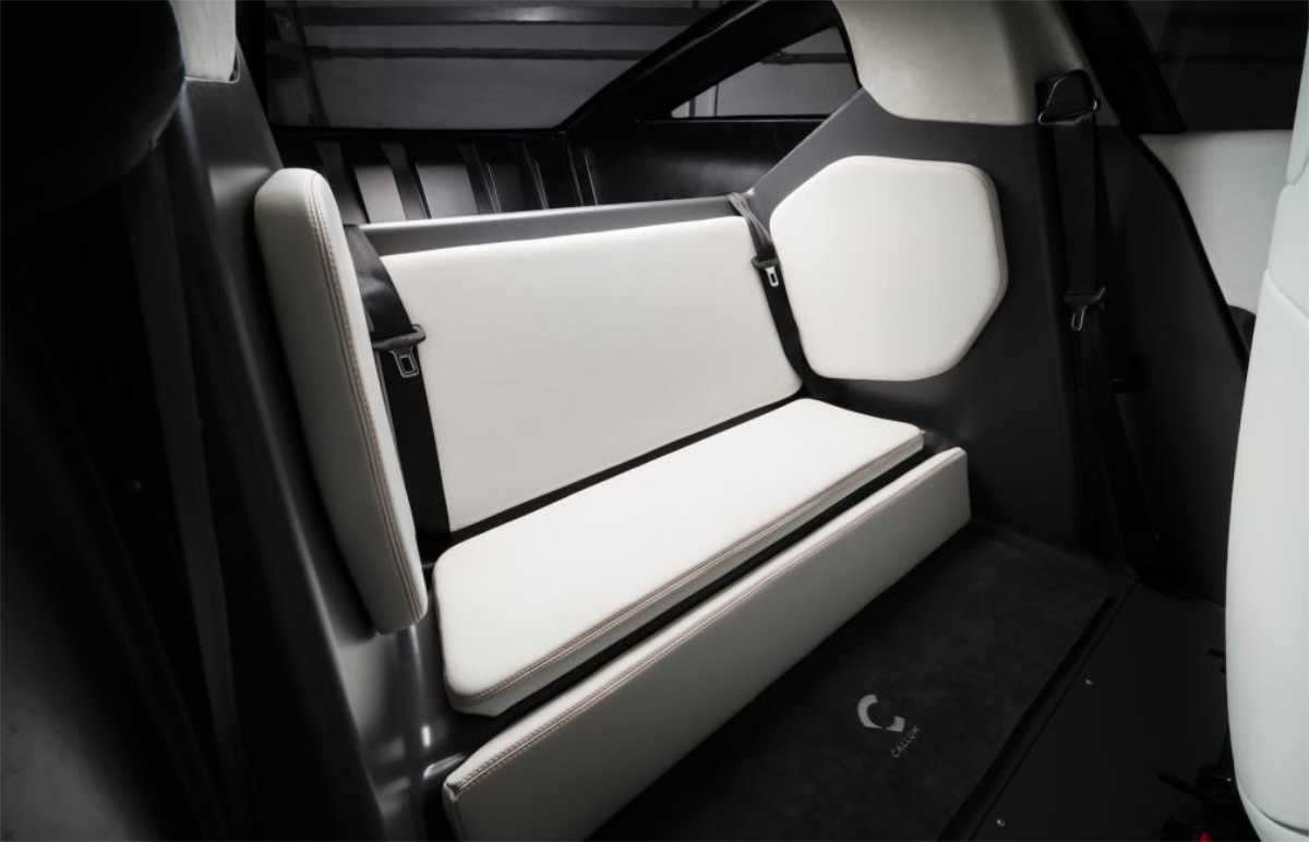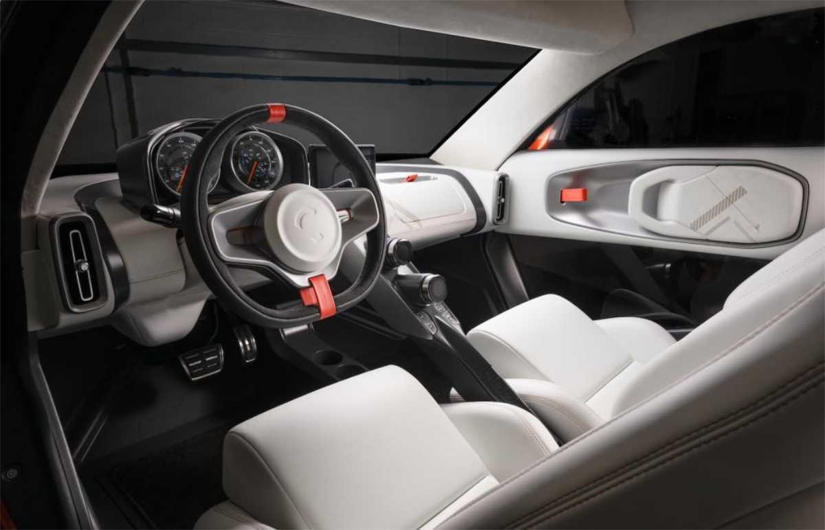 O interior é muito original na sua apresentação e os materiais utilizados parecem ser de grande qualidade. É certamente aventureiro, mas não rústico, e o ambiente claro do modelo apresentado nas fotografias contribui para o seu carácter lúdico. Como um 2+2, ele pode acomodar pequenos passageiros na parte traseira.