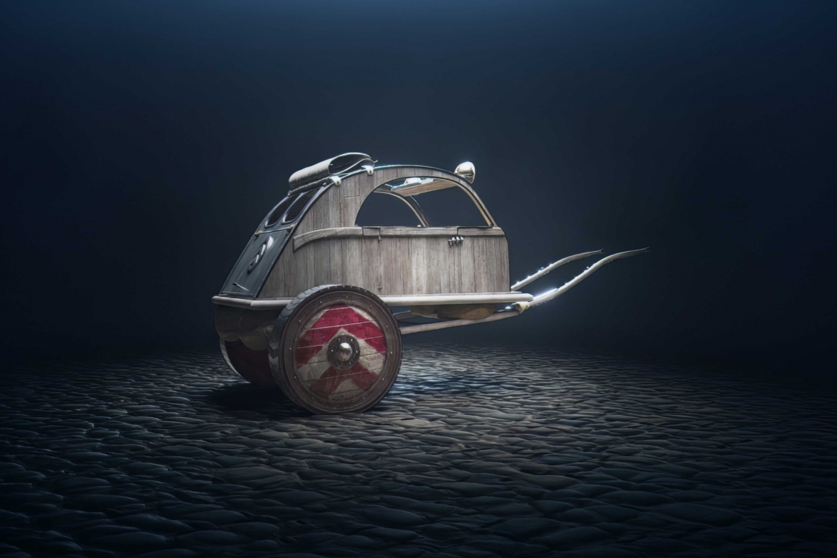 A “carruagem concept” presente no filme “Astérix & Obélix: O Império do Meio” reformula o 2CV com referências marcantes ao universo dos heróis gauleses. As equipas de estilo da Citroën reinterpretaram, assim, os valores fundamentais da marca – conforto, tecnologia e estilo arrojado – à imagem do universo “Astérix” e deram-lhes um toque especial. O resultado é uma carruagem com linhas características, reconhecíveis por todos, suspensões feitas de estômagos de javali, um tejadilho solar, faróis inspirados nos capacetes gauleses, iluminados por pirilampos que beberam a poção mágica, e rodas feitas de escudos reciclados com os tão famosos chevrons.