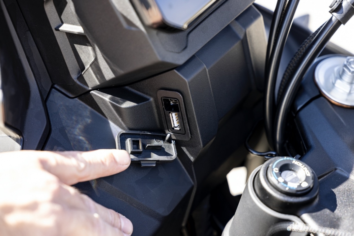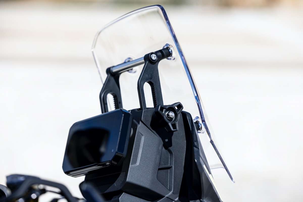 O depósito de combustível apresenta uma capacidade pouco comum para esta faixa de cilindrada, oferecendo-nos 17,5 litros, capazes de nos garantir uma autonomia para cerca de 300km. O para-brisas é facilmente ajustável com apenas uma mão, os retrovisores são rebatíveis e o painel de instrumentos TFT é de 5”, muito completo e com a possibilidade de emparelharmos os nossos smartphones.
