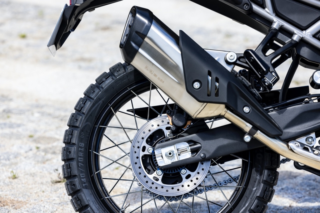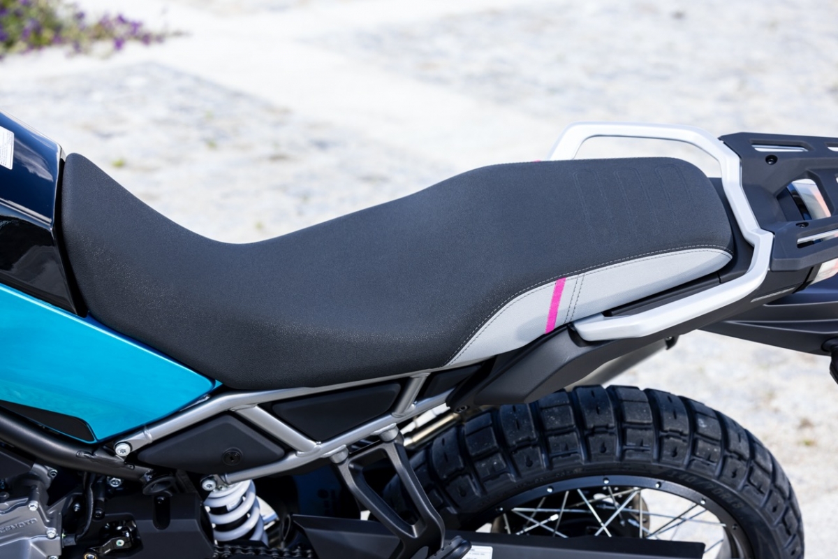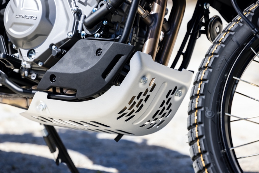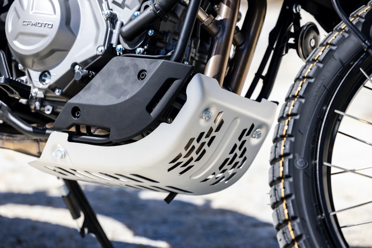 Destaque ainda para o facto de na traseira, o link do amortecedor ter duas posições selecionáveis, permitindo assim com apenas a mudança de um parafuso alterar a altura do assento dos 800 mm para os 820 mm. Para aqueles que preferem ter mais altura, a CFMOTO tem disponível nos acessórios um assento mais alto e plano, que eleva a altura para os 870 mm.