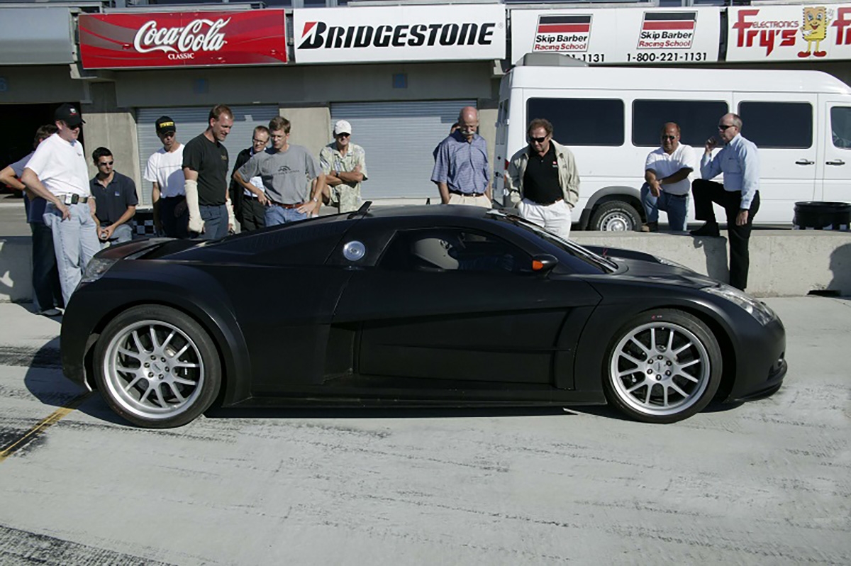 para a frente, foi produzido um segundo protótipo, em quatro semanas, para testes, inclusive para os jornalistas testar, como por exemplo o teste da MotorTrend no circuito de Laguna Seca. Em todos os testes realizados o ME Four-Twelve ficava à frente do Ferrari Enzo e ultrapassava facilmente o SLR McLaren, mas também era mais caro de construir que este. Este protótipo de testes mais parecia um automóvel de competição, pois o interior não tinha luxos e estava com pior qualidade, tinha um mostrador digital Motec, volante Momo, backets Sparco e cintos de 6 apoios, extintor, a própria carroçaria não estava pintada, tendo a fibra de carbono à mostra, todos os vidros eram escurecidos, talvez para não se ver o interior.