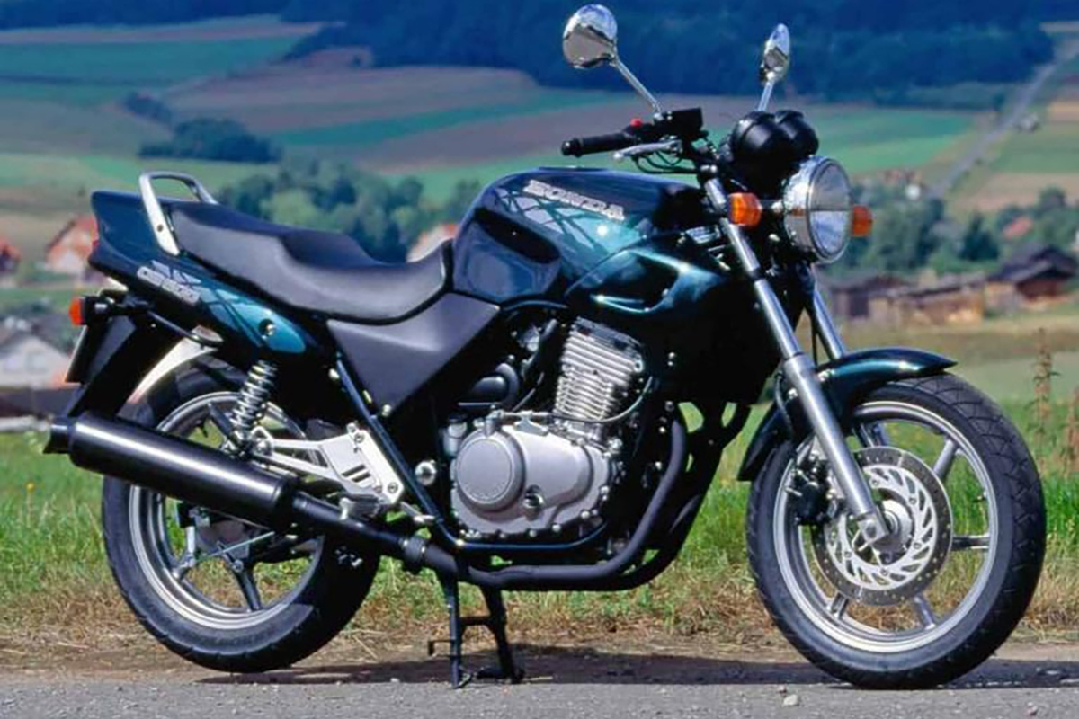 Aquela que foi, provavelmente, a mais séria adversária da GS 500 chegou ao mercado em 94. A Honda CB 500! Equipada com um excelente bicilíndrico paralelo, com refrigeração líquida, capaz de debitar uns interessantes 58 cv às 9500 rpm. Pesava quase o mesmo e só o preço não ajudava, custando 949 contos, ou seja, mais 80 contos, o que era algum dinheiro, a caminhar para mais quase 2 salários mínimos.