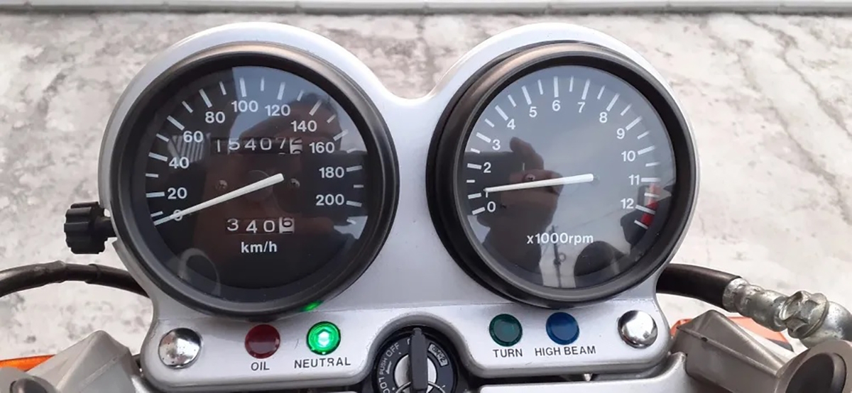 Na sua extensa vida há uma crítica que sempre lhe foi feita e nunca chegou a ser corrigida: tem 4 luzes avisadoras (pressão do óleo, neutral, mudança de direção e “máximos”), taquímetro (zona vermelha às 11.000rpm), conta km’s com um contador parcial, mas nunca veio com qualquer indicação relativa ao combustível. Nem mesmo uma mísera luz que se podia acender antes da reserva! É mesmo sentir o motor “desfalecer” e girar a torneirinha para a posição da reserva…