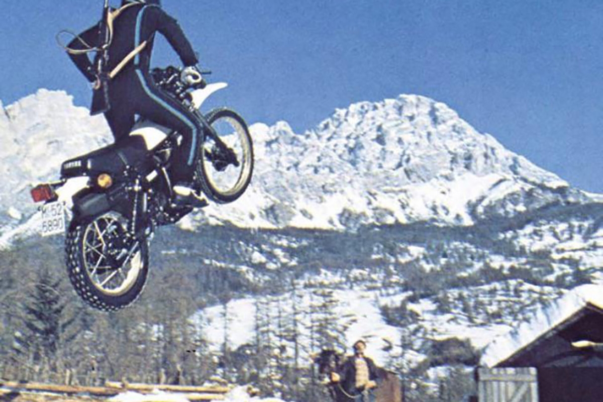 Já vinha de décadas atrás a ideia de associar as motos ao cinema (vimos o exemplo da Vespa, mas há muitos outros, tal como já indicámos na nossa rúbrica “10 semanas, 10 filmes” sobre os quais ainda não falámos, caso da marca Harley Davidson. O construtor japonês fez mais uma jogada de sucesso, associando a sua XT 500 ao escritor Ian Fleming, cuja genial personagem, James Bond, já era um verdadeiro clássico com 11 filmes da saga até à data.