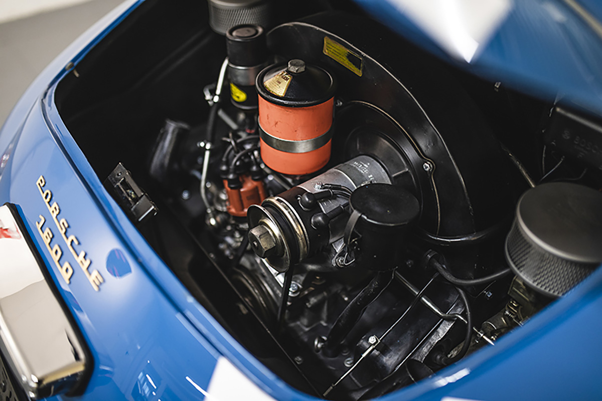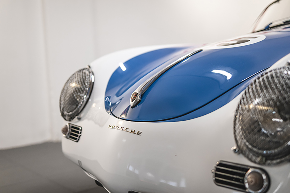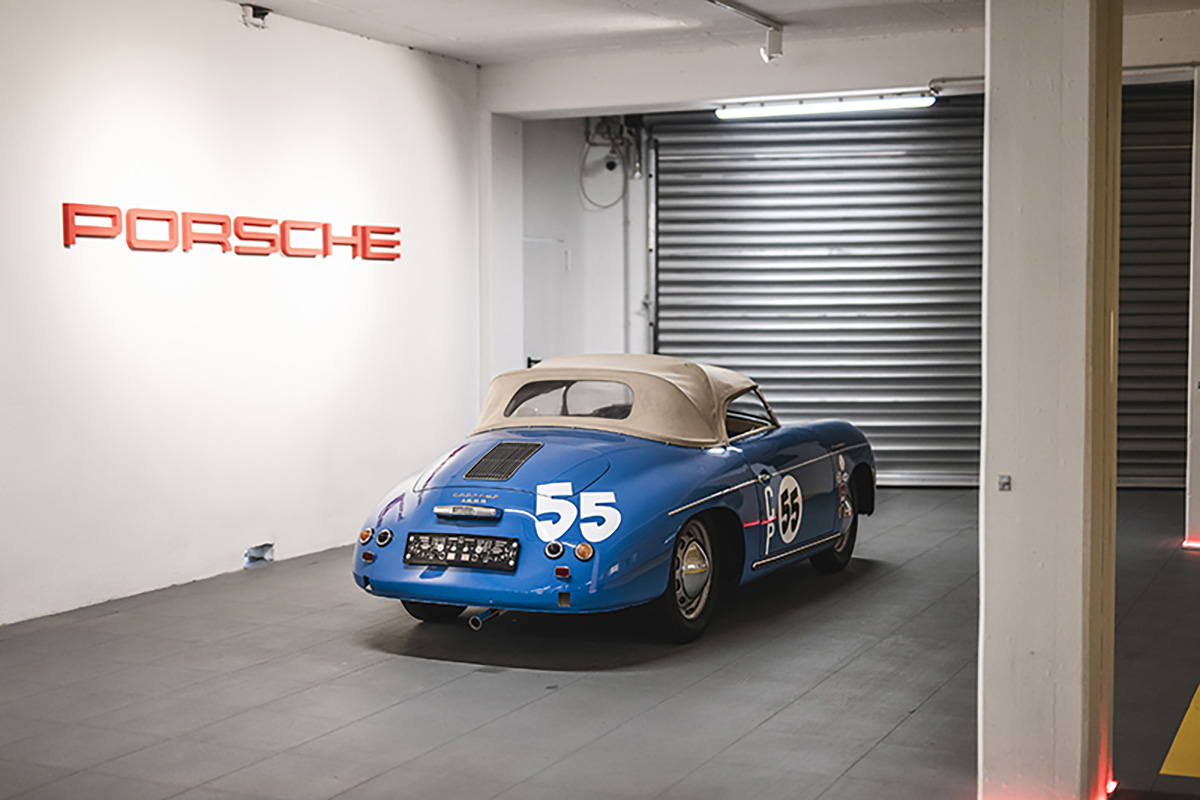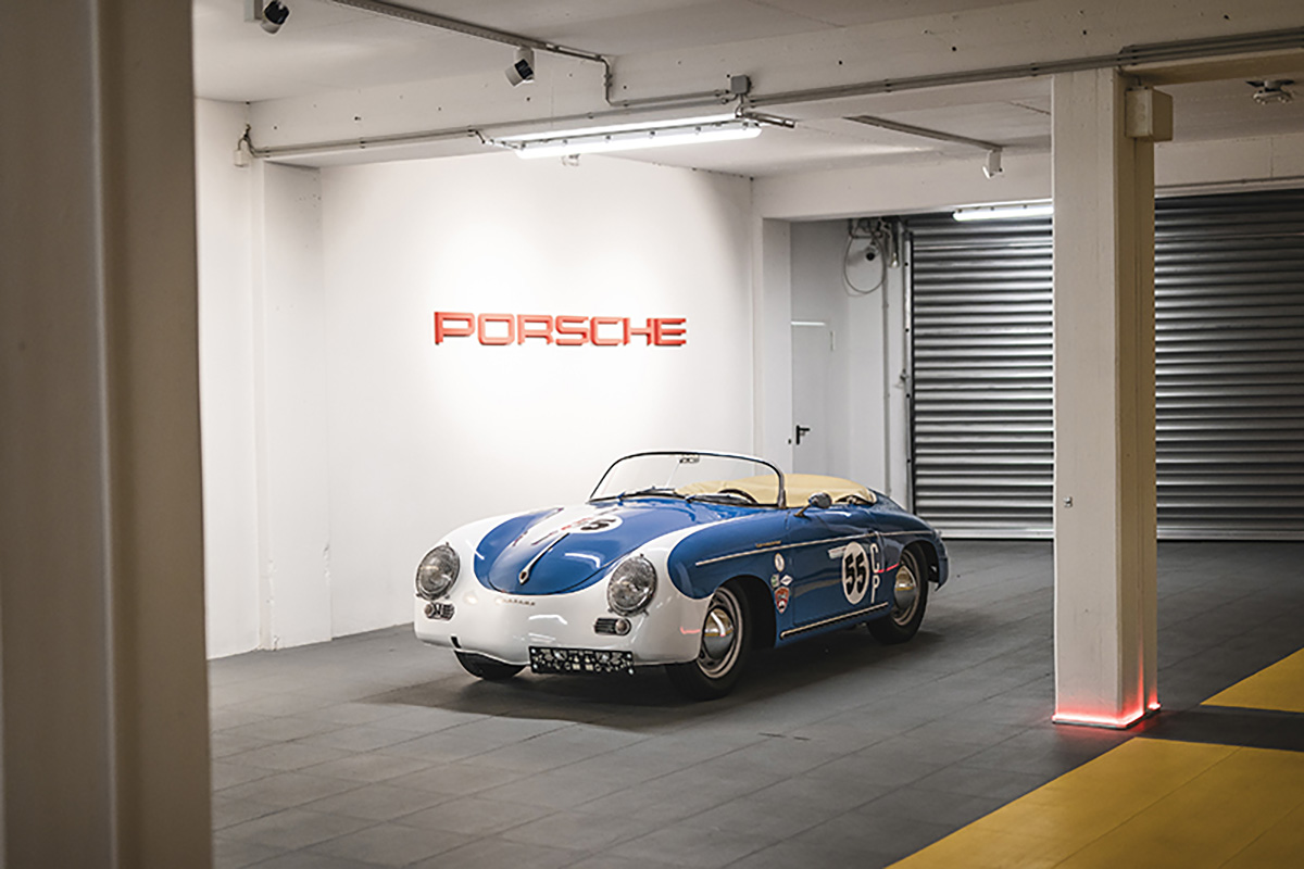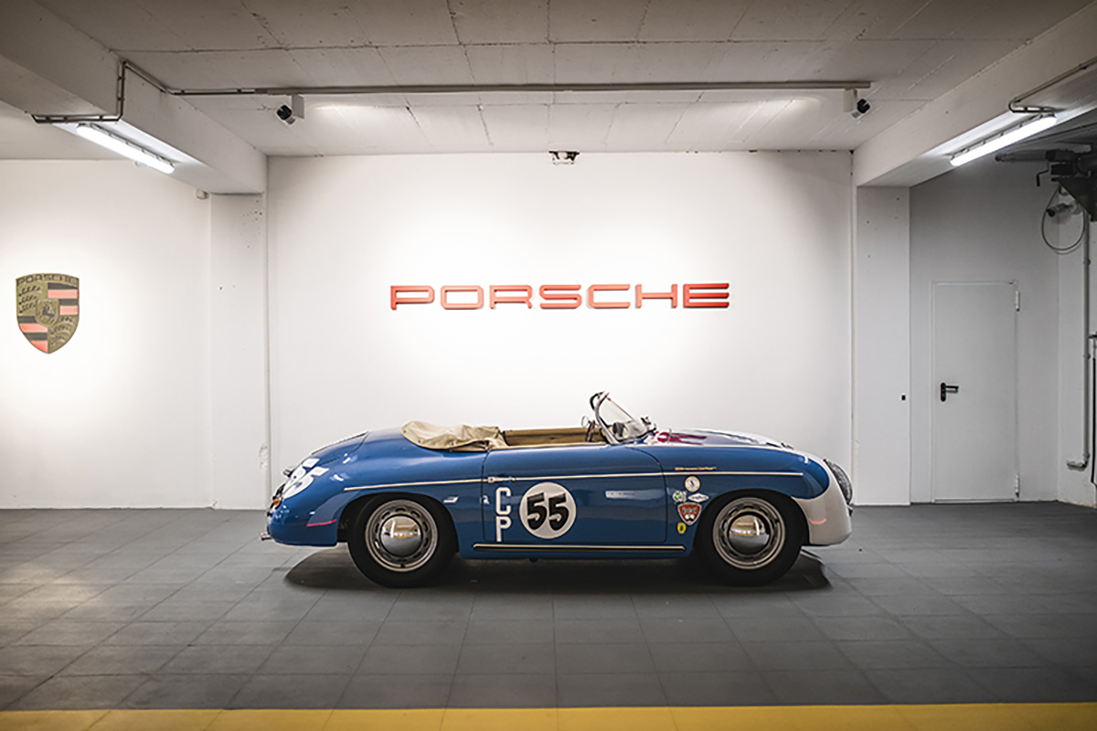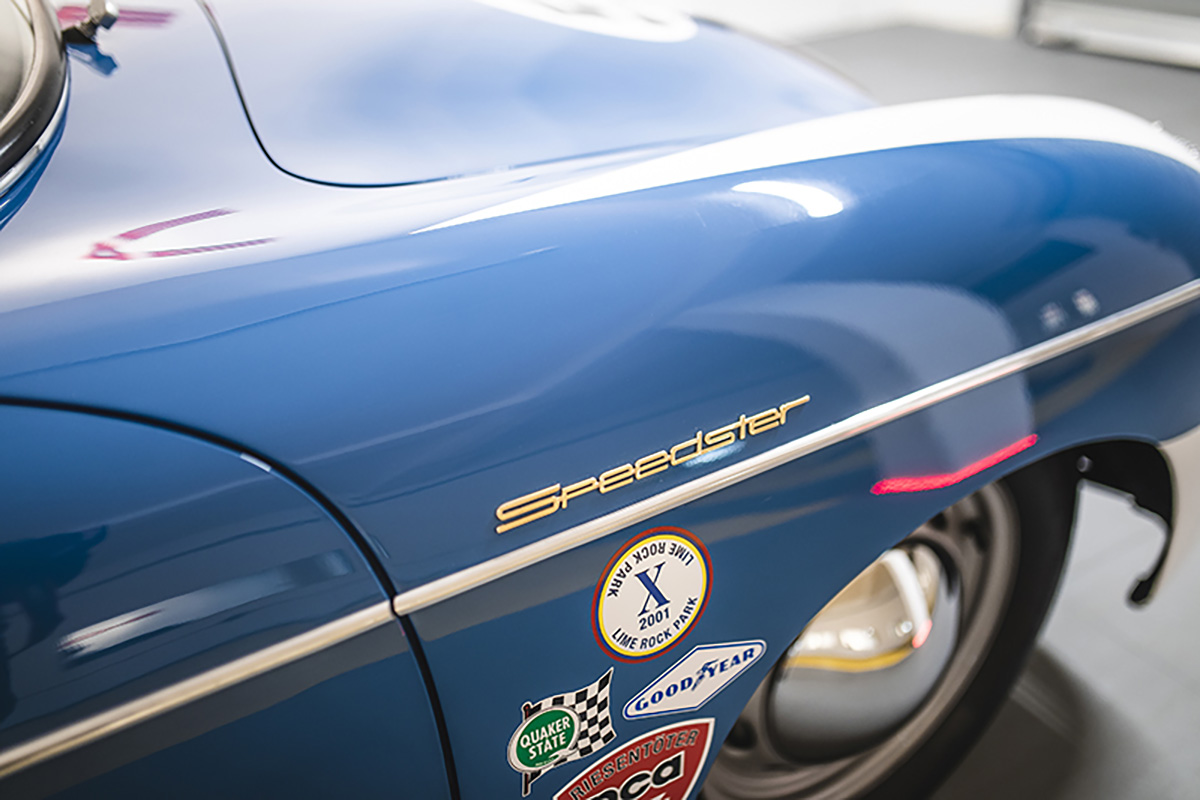 Este Porsche 356 Speedster está pintado numa cor extremamente rara, designada de Sky Blue, que combina com o interior em pele bege Sahara, estufado pelo italiano Stefan Widmann. O Porsche 356 Speedster nasceu da vontade do importador da marca para os E.U.A, Max Hoffman, que conhecia bem os seus clientes. Este exemplar pertence às 1033 unidades produzidas em 1955, vendido novo no stand de Hoffman, em Nova Iorque. Este automóvel está equipado com o motor de 1,5 litros com 60cv. O seu valor estimado de venda situa-se entre os 275 mil e os 325 mil euros.