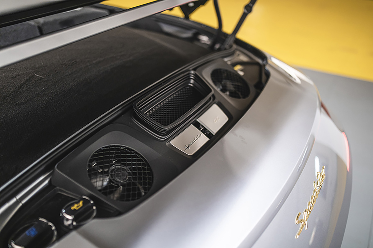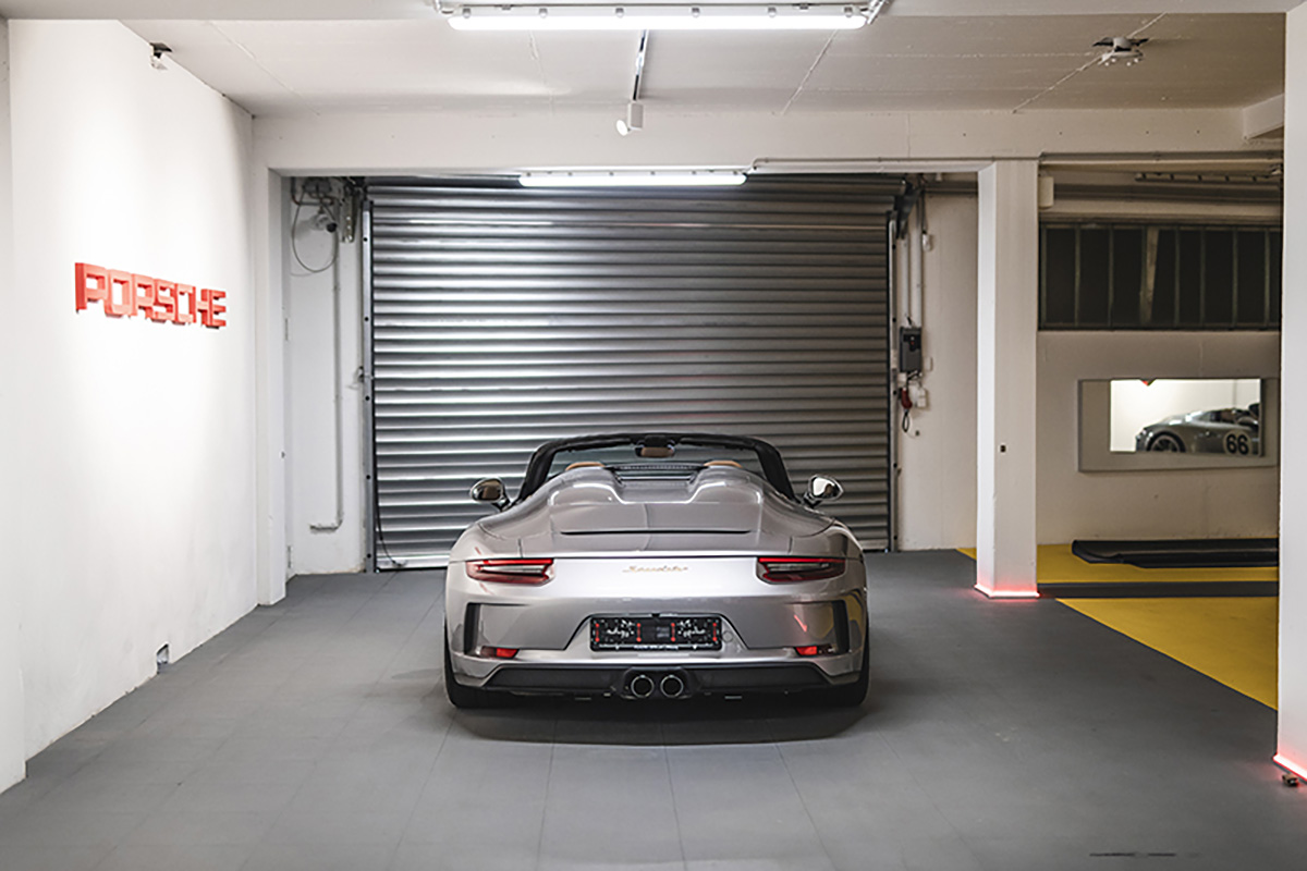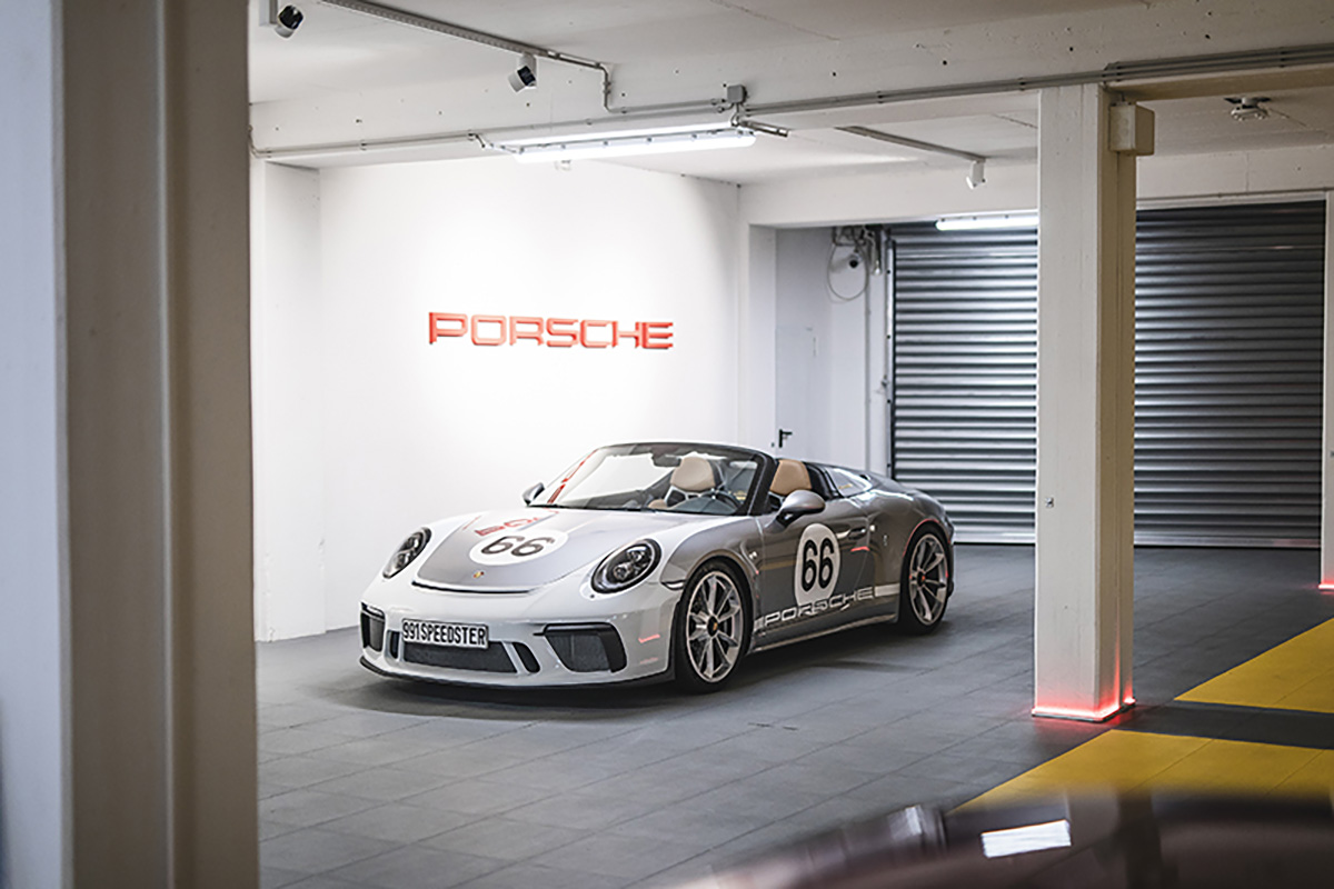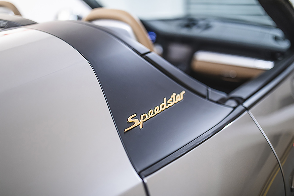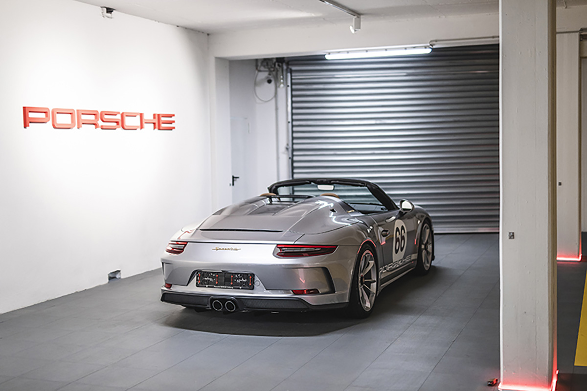 Este Porsche 356 Speedster está pintado numa cor extremamente rara, designada de Sky Blue, que combina com o interior em pele bege Sahara, estufado pelo italiano Stefan Widmann. O Porsche 356 Speedster nasceu da vontade do importador da marca para os E.U.A, Max Hoffman, que conhecia bem os seus clientes. Este exemplar pertence às 1033 unidades produzidas em 1955, vendido novo no stand de Hoffman, em Nova Iorque. Este automóvel está equipado com o motor de 1,5 litros com 60cv. O seu valor estimado de venda situa-se entre os 275 mil e os 325 mil euros.