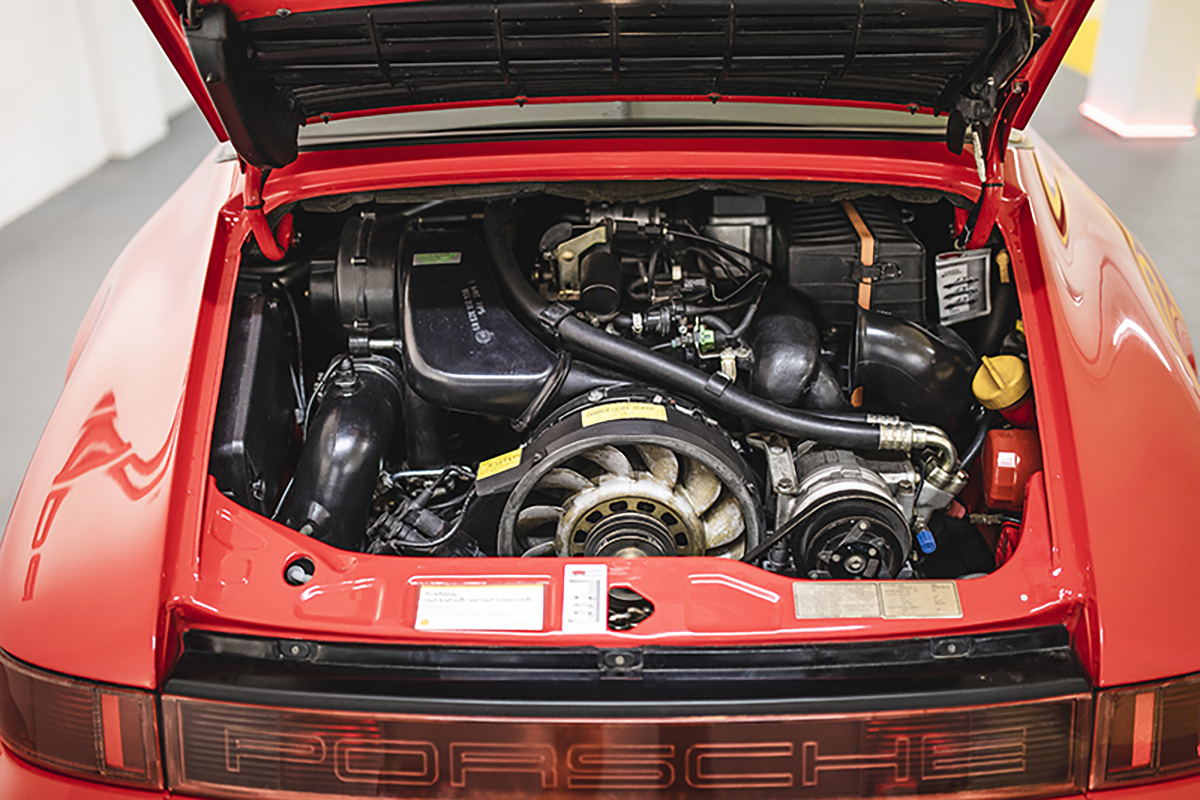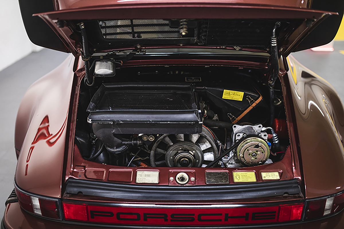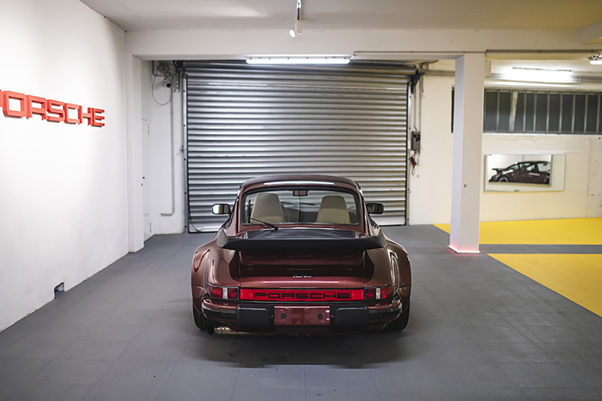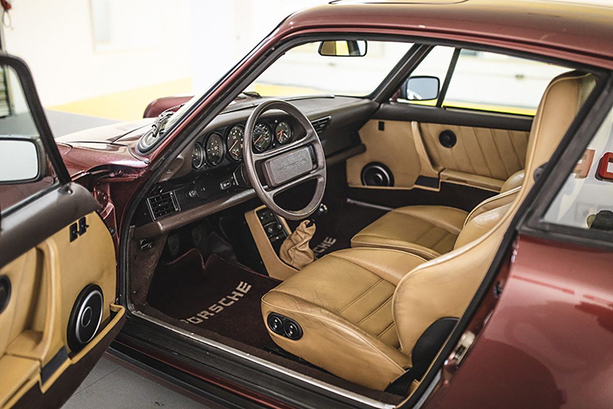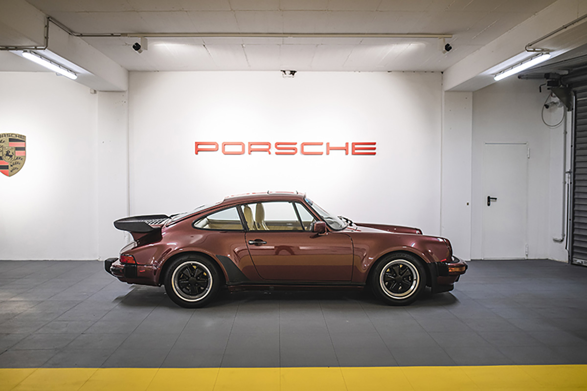 Desde 1978 que a Porsche, sendo já uma marca implementada a nível global, iniciou um departamento que respondia a pedidos mais exigentes de certos clientes, aqueles que queriam o seu automóvel diferente dos demais. Inicialmente como Porsche Special Wishes Program, agora conhecido por Porsche Exclusive, vários são os automóveis com pormenores diferentes, como cores exteriores e interiores, como é o caso deste 911 Turbo, pintado na cor Burgundy Metallic, que contrasta com os castanhos utilizados no interior, sendo o único exemplar do mundo com esta configuração. Além disso, pertence ao lote dos apenas 1424 exemplares do 911 Turbo produzidos em 1986 com especificações norte-americanas e tem alguns extras raros como bancos desportivos e eléctricos, tecto de abrir eléctrico, escova traseira, lava faróis, climatização automática e sistema de segurança. Está equipado com o motor de 3,3 litros, com turbo e intercooler, produzindo 282cv, apenas para as rodas traseiras, aqui com autoblocante, através da caixa de quatro velocidades. O valor estimado deste exemplar situa-se entre os 75 mil e os 100 mil euros.