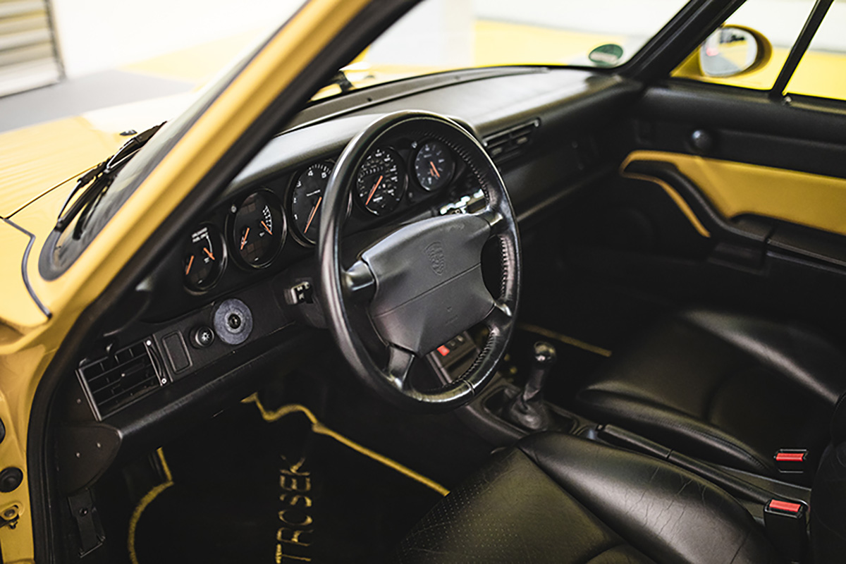 A empresa de personalização alemã Strosek é conhecida por aplicar painéis mais aerodinâmicos nos modelos da Porsche, com uma qualidade incrível. Este Porsche 993 recebeu alguns melhoramentos da Strosek, no entanto, não são muito pronunciados, mas são funcionais, tais como o spoiler traseiro com entradas de ar para o motor, para-choques frontais e traseiros, saias laterais, jantes de 18”, molas da suspensão mais baixas, além de outros pormenores no interior. Para terminar este exemplar está pintado na lindíssima cor Speed Yellow e com apenas 22.000 km. O valor estimado situa-se entre os 50 mil e os 75 mil euros.