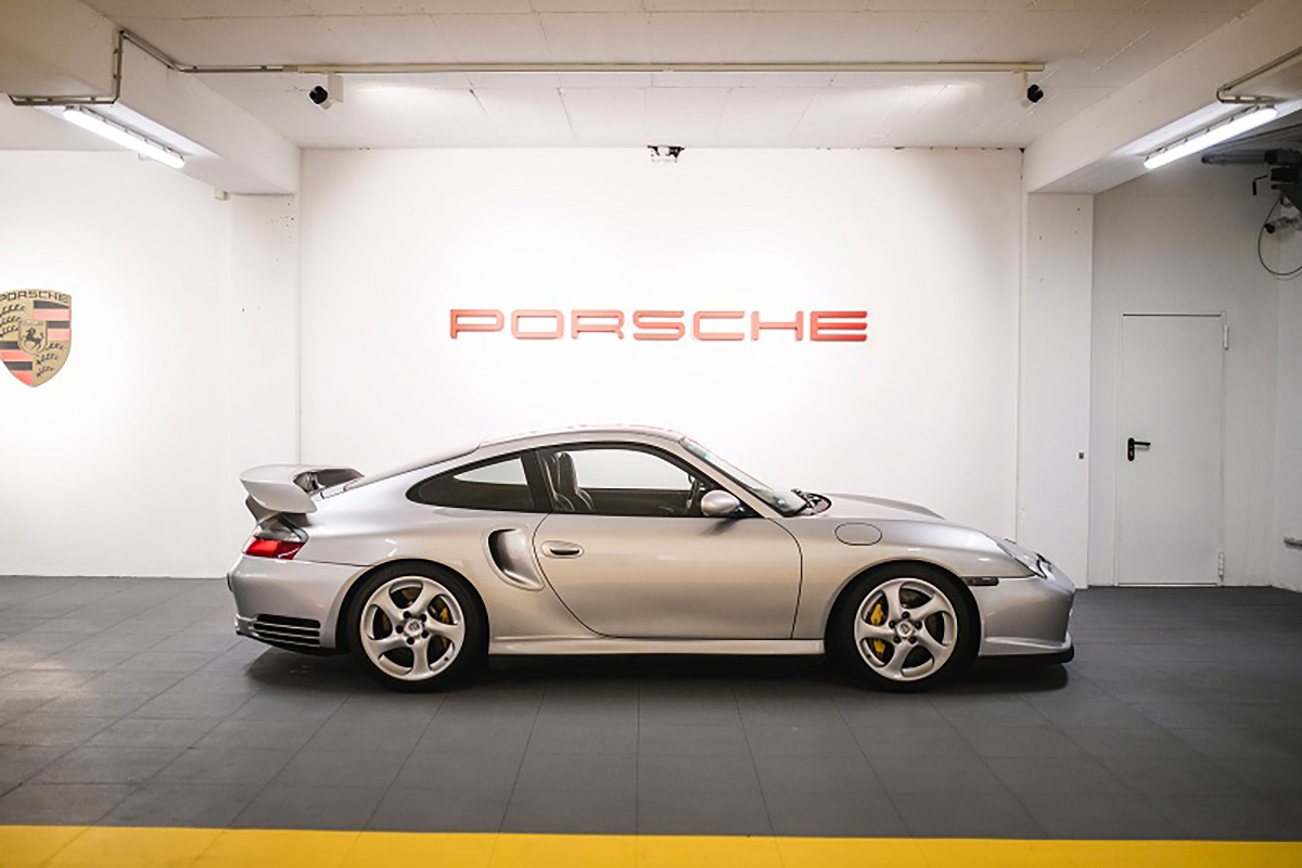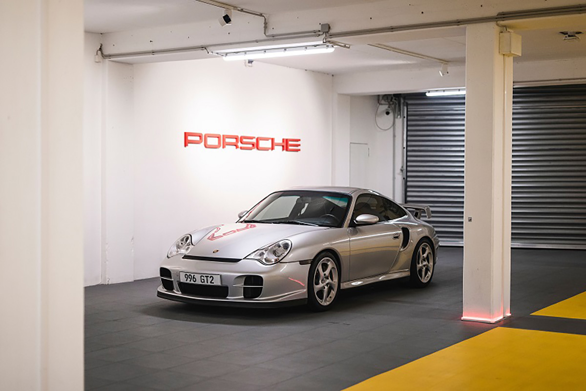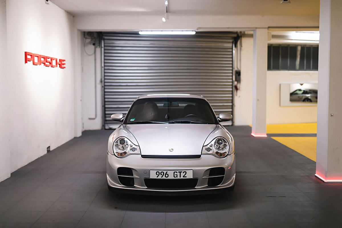 O Porsche 911 GT2 é a versão de topo da geração 996 e aqui pintado na cor Polar Silver Metallic, que contrasta com as pinças de travão em amarelo. Os 996 GT2 estão equipados com o motor 3,6 litros twin-turbo, desenvolvendo 456cv, potência essa enviada somente para as rodas traseiras através de uma caixa de seis velocidades manuais. O GT2 é ainda 100 kg mais leve que um 911 Turbo. Este exemplar pertence ainda aos apenas 303 911 GT2 produzidos com especificações norte-americanas e tem somente 6.300 km percorridos. O valor estimado situa-se entre os 120 mil e os 140 mil euros.