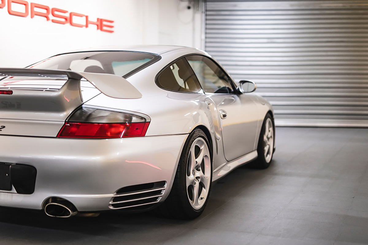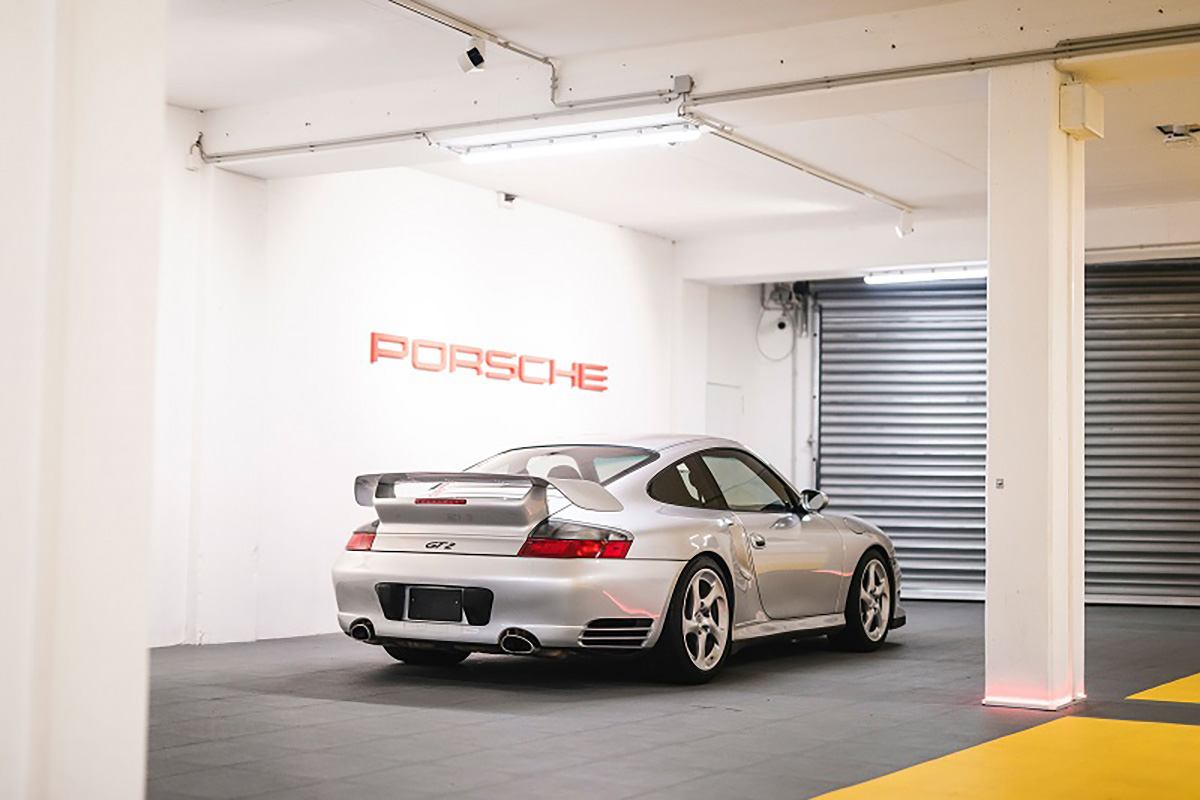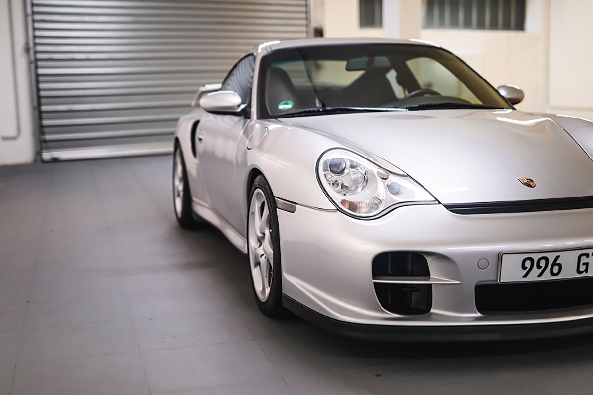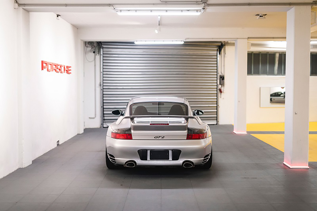 O Porsche 911 GT2 é a versão de topo da geração 996 e aqui pintado na cor Polar Silver Metallic, que contrasta com as pinças de travão em amarelo. Os 996 GT2 estão equipados com o motor 3,6 litros twin-turbo, desenvolvendo 456cv, potência essa enviada somente para as rodas traseiras através de uma caixa de seis velocidades manuais. O GT2 é ainda 100 kg mais leve que um 911 Turbo. Este exemplar pertence ainda aos apenas 303 911 GT2 produzidos com especificações norte-americanas e tem somente 6.300 km percorridos. O valor estimado situa-se entre os 120 mil e os 140 mil euros.