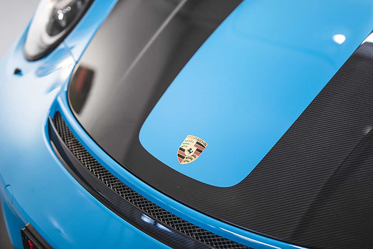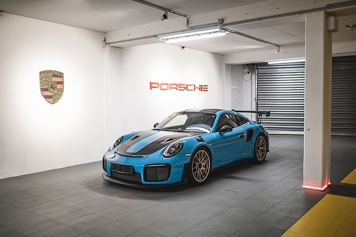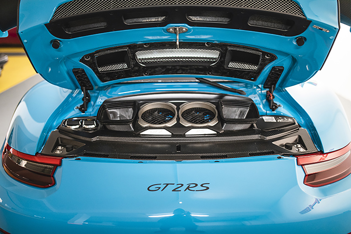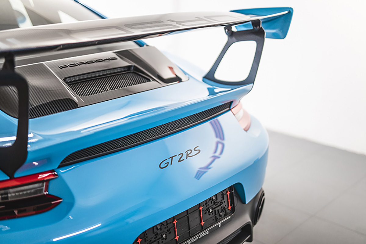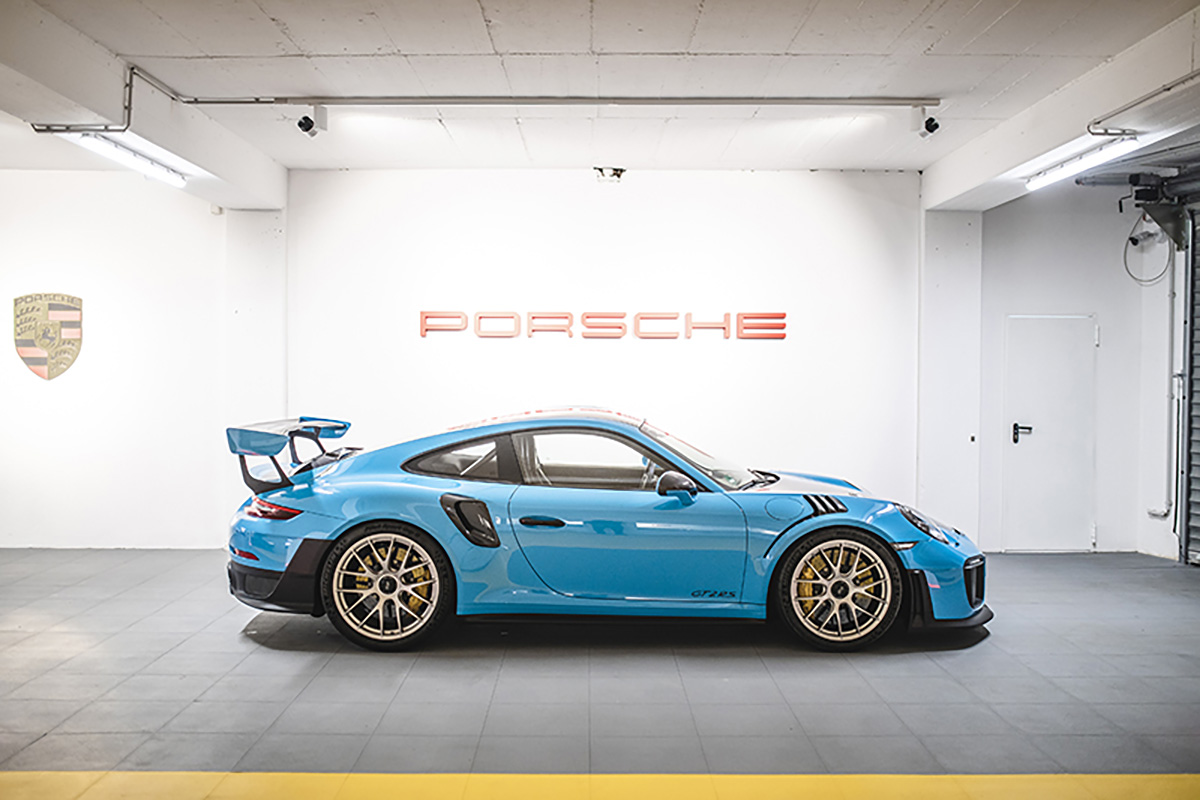 O 911 GT2 RS Weissach foi dos mais extremos 911 algumas vez produzidos até à data, rivalizando mesmo com as criações da RUF, 9ff e Strosek, oferecendo 691cv do motor de 3,8 litros de cilindrada e quatro árvores de cames. O exterior faz uso extensivo de fibra de carbono para a maior redução de peso possível. O interior tem também uma rollcage integral. Este exemplar está pintado numa das melhores cores, a Miami Blue e é um dos 1000 exemplares produzidos com as especificações Weissach, além de ter apenas 2100 km. O valor estimado deste exemplar situa-se entre os 300 mil e os 350 mil euros.