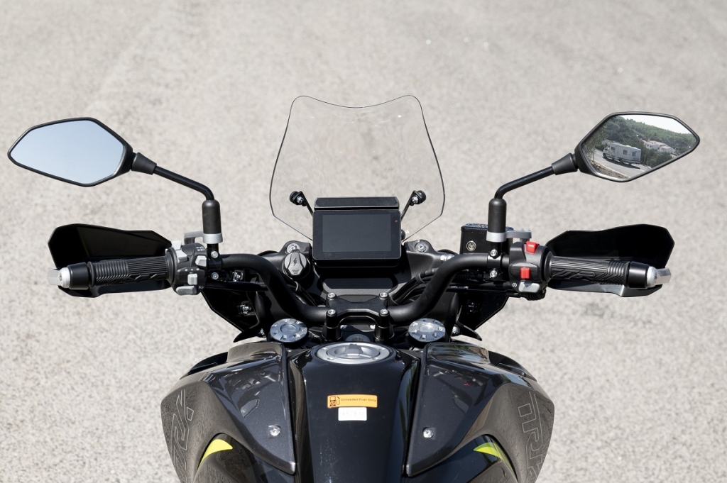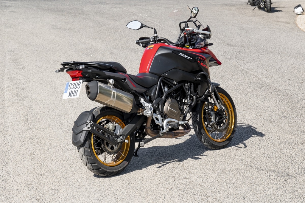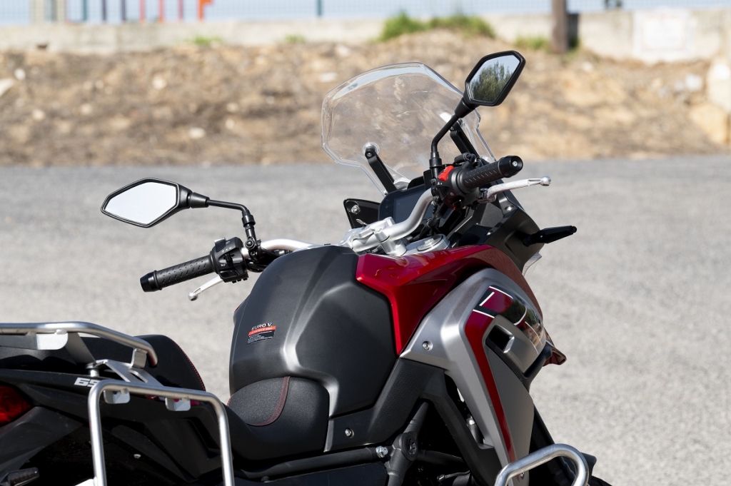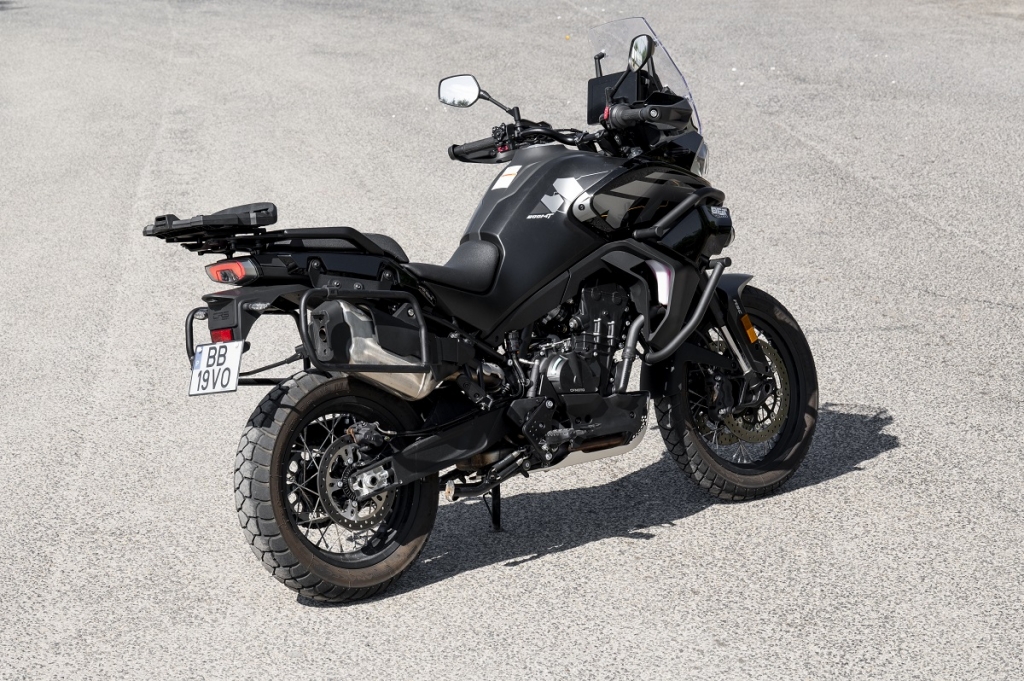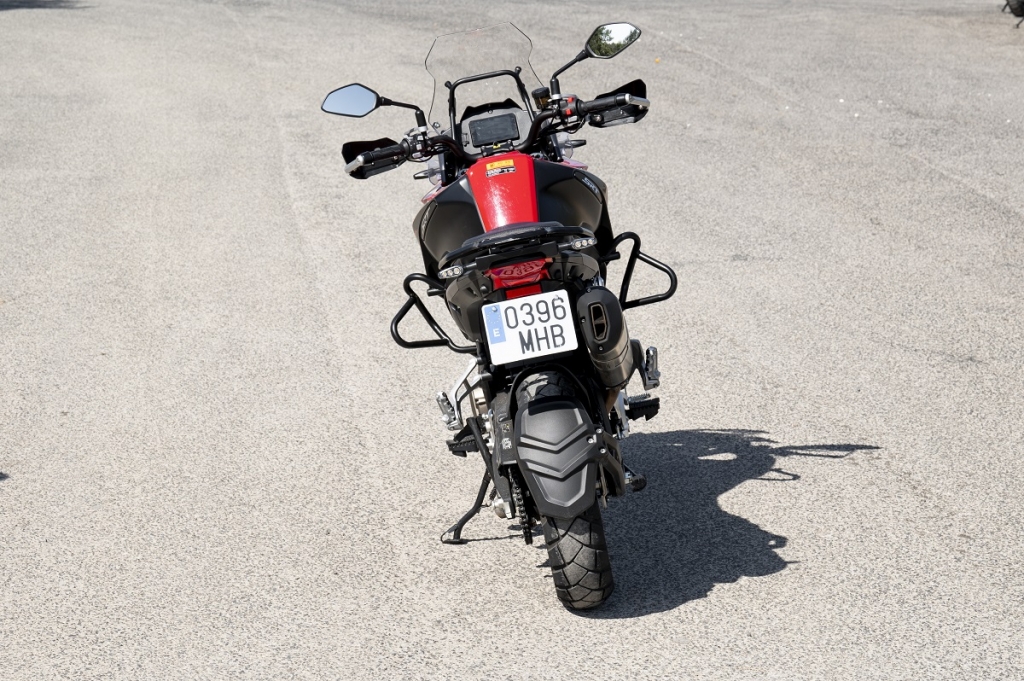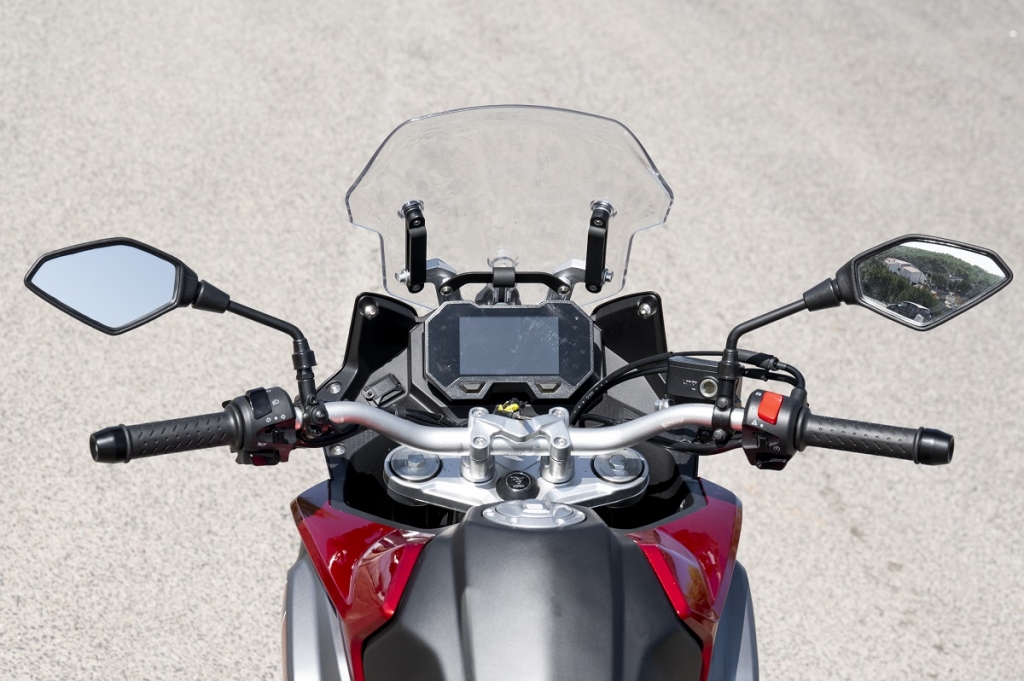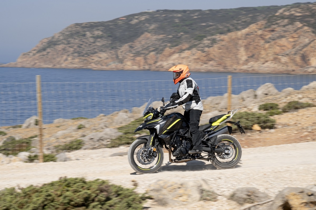 Como pontos menos positivos temos a forquilha invertida dianteira sem ajuste; para brisas baixo e sem ajuste; ABS não desconectável e ausência de controlo de tração. Embora partilhe muitos componentes com a QJ Motor, modelo lançado pelo mesmo proprietário da Benelli, faz questão de deixar bem vincados os traços europeus como por exemplo no painel de instrumentos TFT (com ligação via bluetooth aos smartphones), muito mais cuidado que na QJ. A travagem, com dois discos recortados na frente de 320 mm e um traseiro de 260 mm, são mordidos por pinças da própria Benelli, que funcionam muito bem. As manetes são ajustáveis em distância aos punhos, para maior conforto. No “cockpit” contamos ainda com duas tomadas, uma USB e outra USB-C. Dinamicamente falando, é muito equilibrada, com baixo centro de gravidade, leve e ágil com um motor muito encorpado, linear e cheio, com velocidade de ponta que ultrapassa os 180 km/h… As suspensões, apenas com ajuste na pré-carga da mola do amortecedor traseiro, são firmes, prevendo a utilização nos mais diversos cenários, incluíndo off road. Por baixo do assento traseiro conseguimos guardar pequenos objectos e a grelha porta-bagagem traseira destoa do conjunto, está exageradamente elevada… para mim, se estivesse mais integrada na traseira e mais baixa, só teria a ganhar. Com consumo de quatro litros aos 100 km deixa antever uma autonomia que supera os 400 km, fruto da capacidade do depósito de combustível que é de 20L. Como oferta de lançamento beneficiamos ainda da campanha especial do kit de malas originais Benelli.